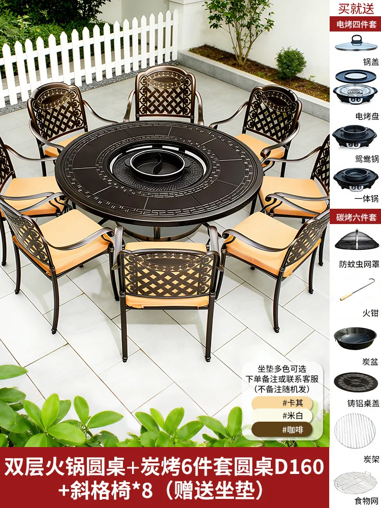 Комплект садовой мебели Baying, 8 стульев с подушкой, круглый гриль-стол 160 см, духовка с двумя секциями и гриль-решетка