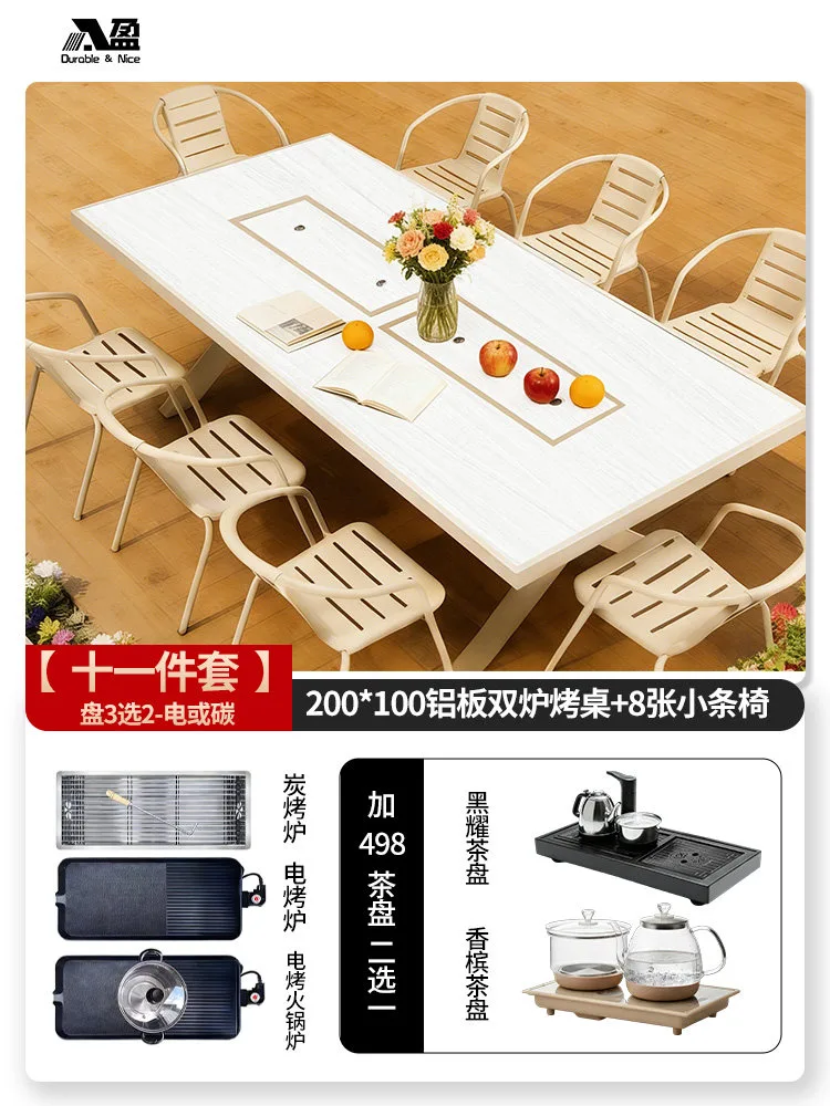 Baying: Премиальный комплект садовой мебели с двойным гриль-столом (8 стульев + стол 200х100 см)