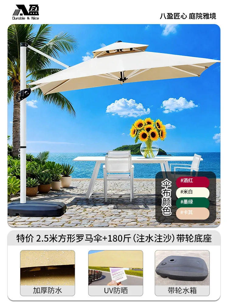 Комплект садовой мебели: римский зонт 2,5x2,5 метра, резервуар с колесиками