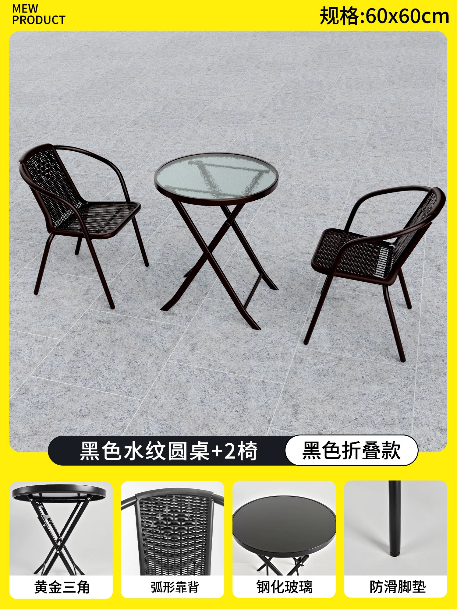 Комплект садовой мебели Baying, 2 стула Bordeaux, круглый стол, 60 см, складной, прозрачная столешница 19 265₽
