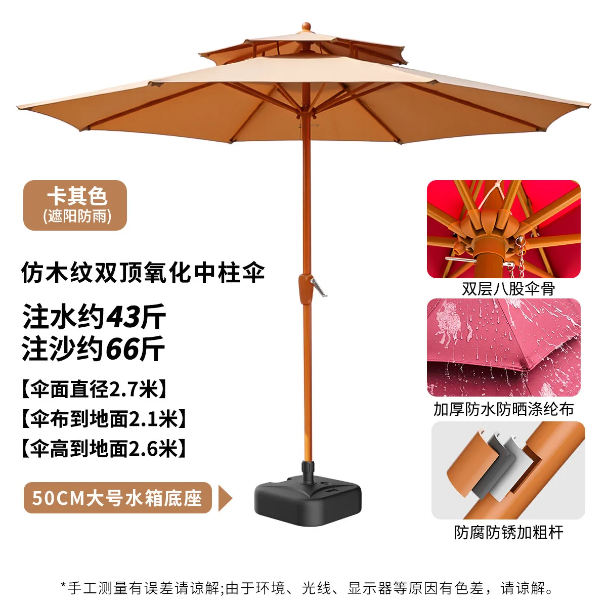 Комплект: солнцезащитный зонт с ручным приводом, 2,7 метра