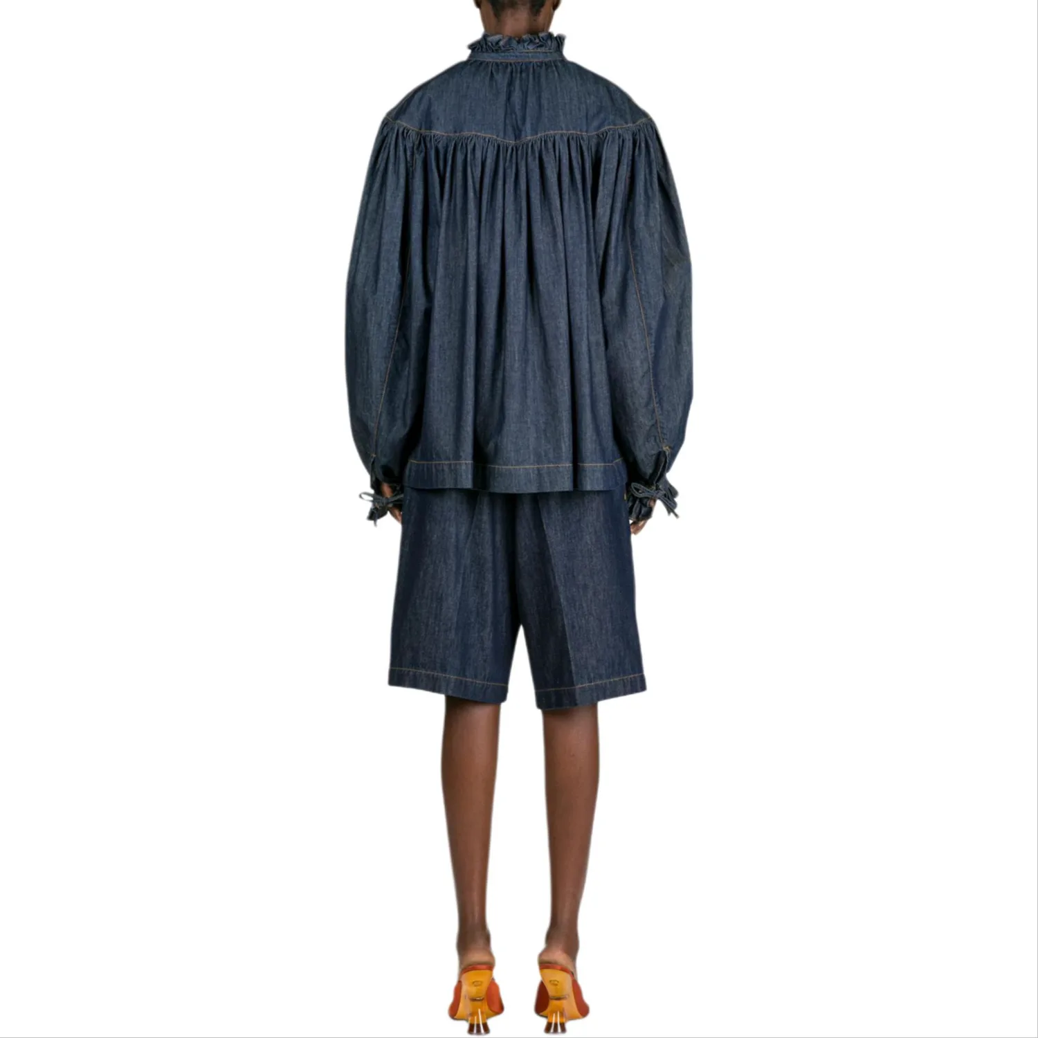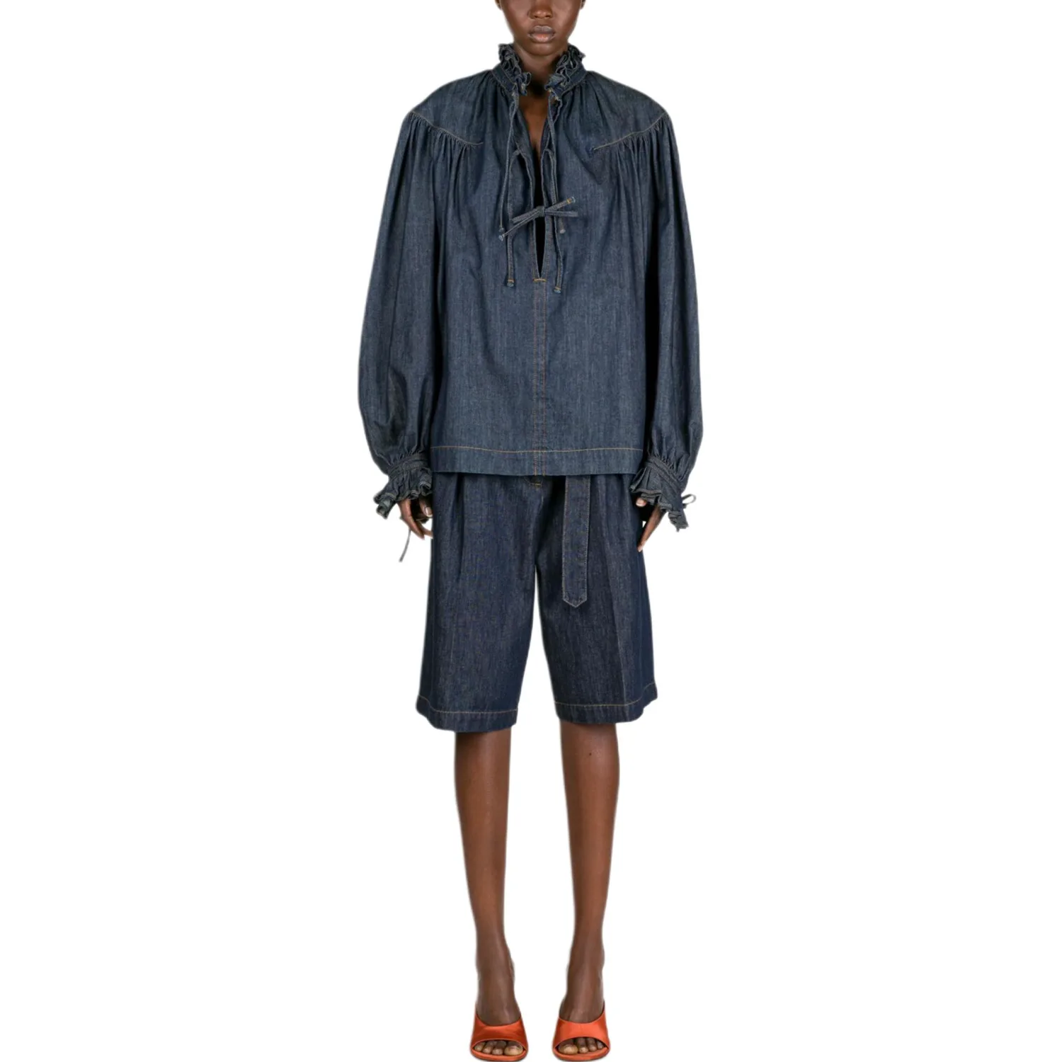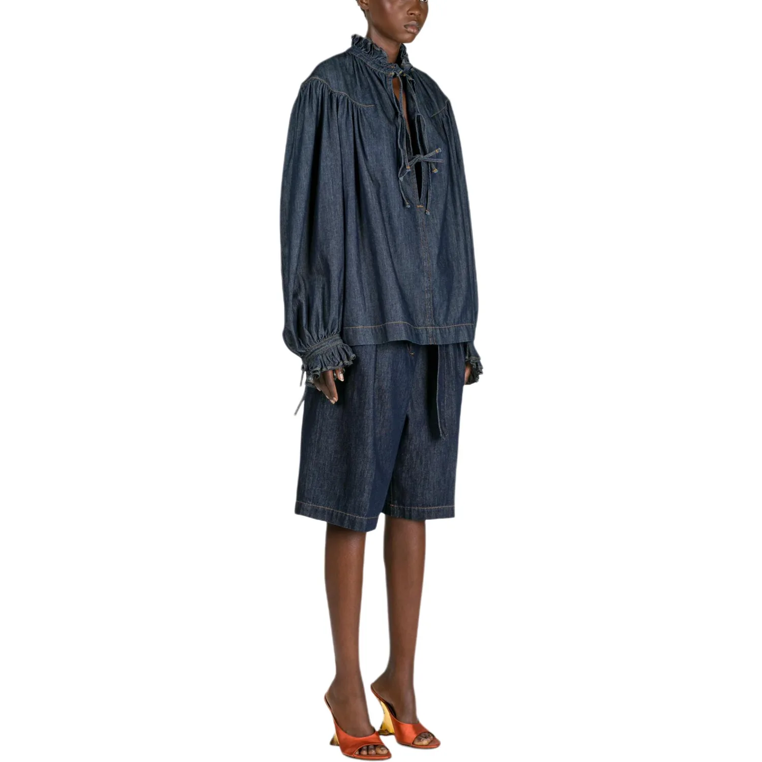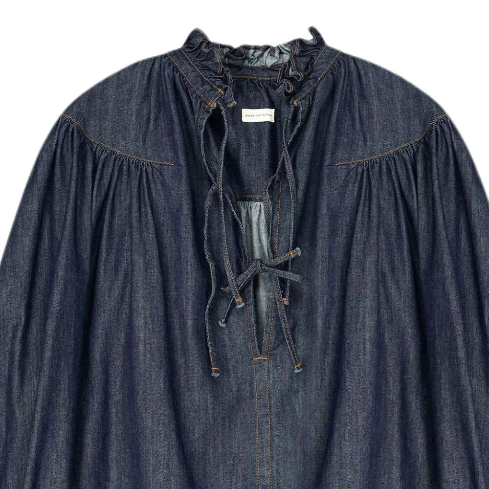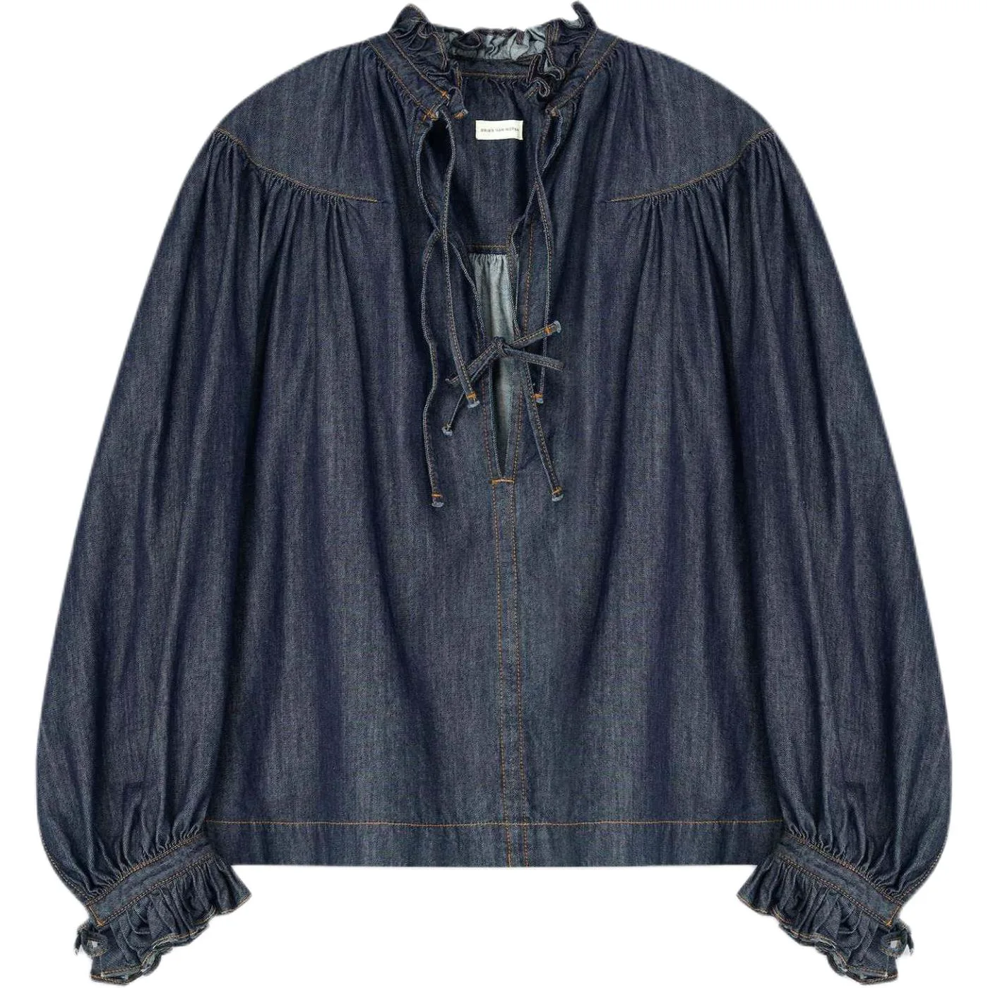 Джинсовая рубашка с рюшами DRIES VAN NOTEN, indigo