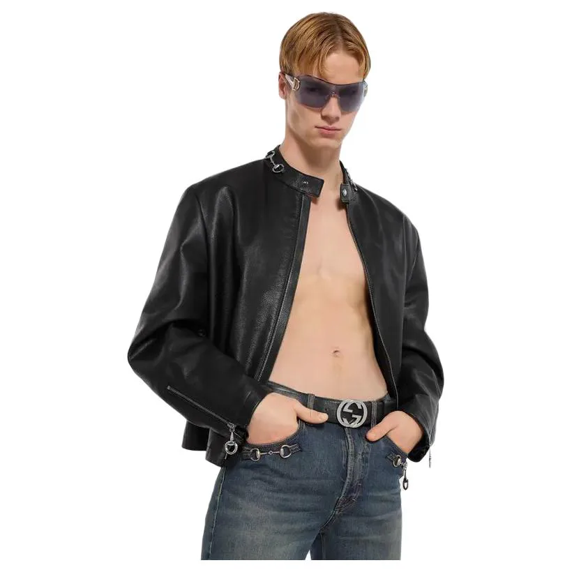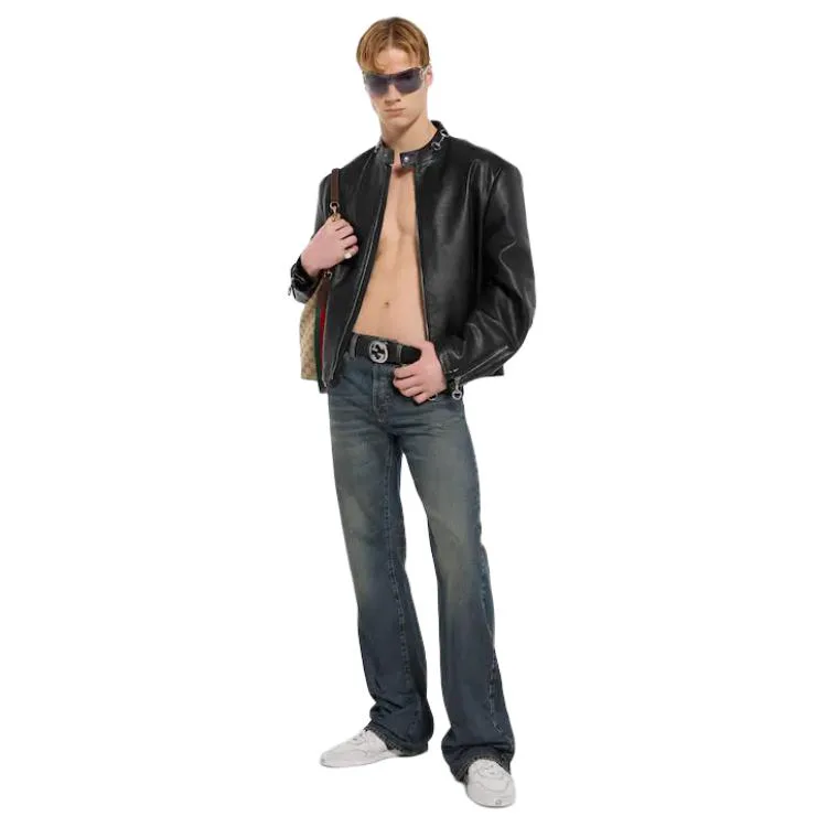 GUCCI Кожаный ремень мужской черный Width 4cm