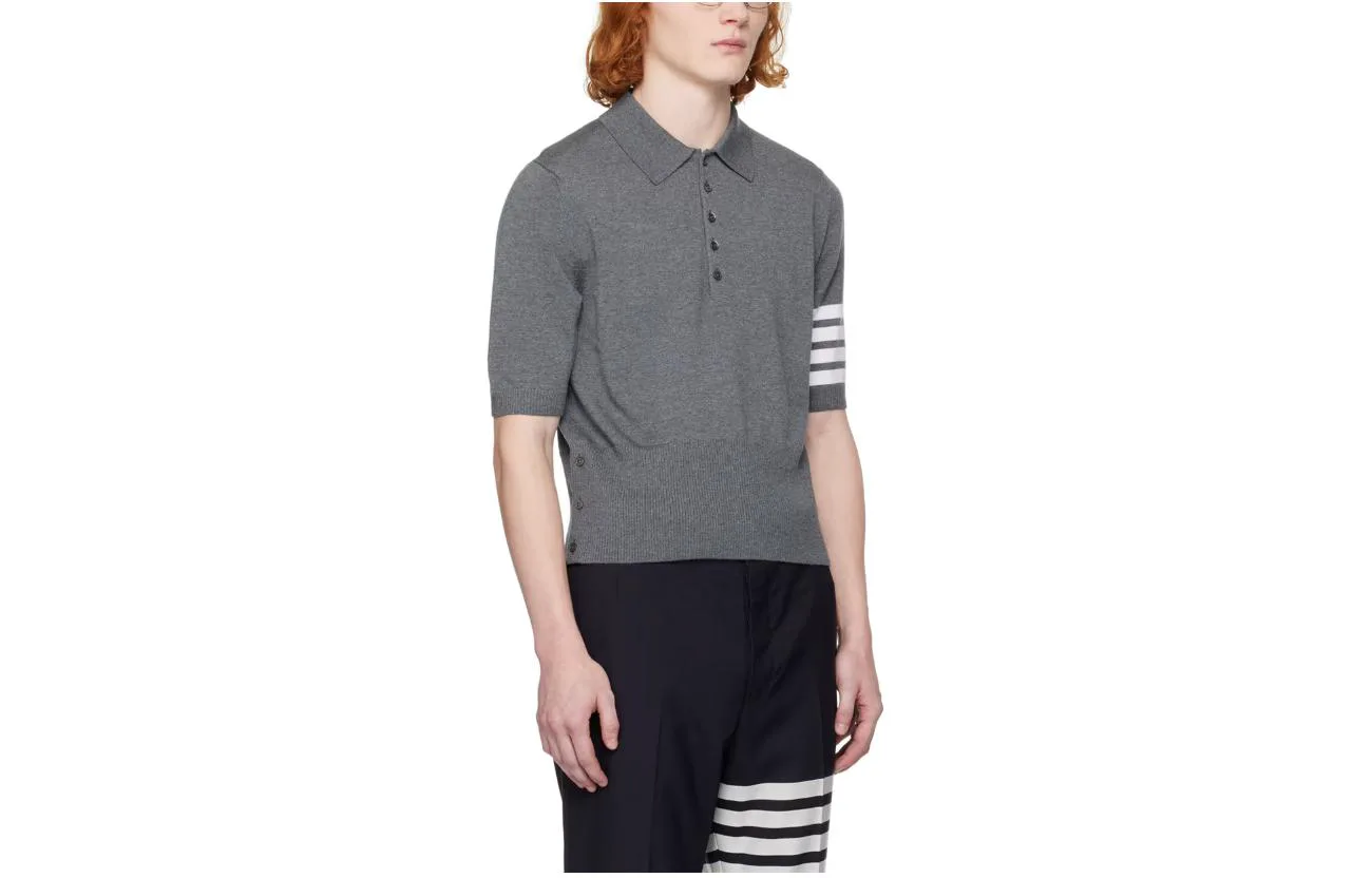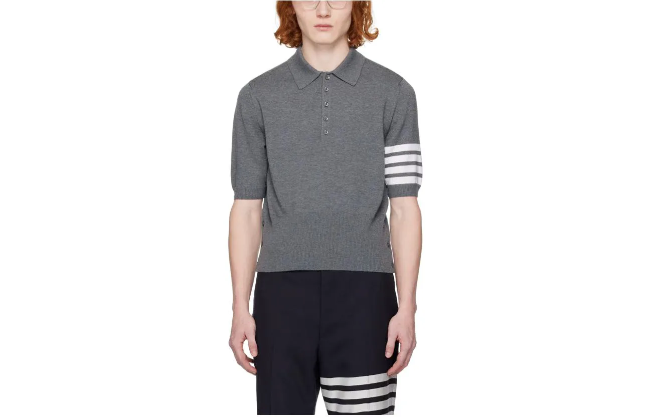 4-Bar Cotton Polo Jumper THOM BROWNE, серый