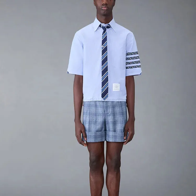 THOM BROWNE Рубашка мужская Blue Pointed Collar Moderate