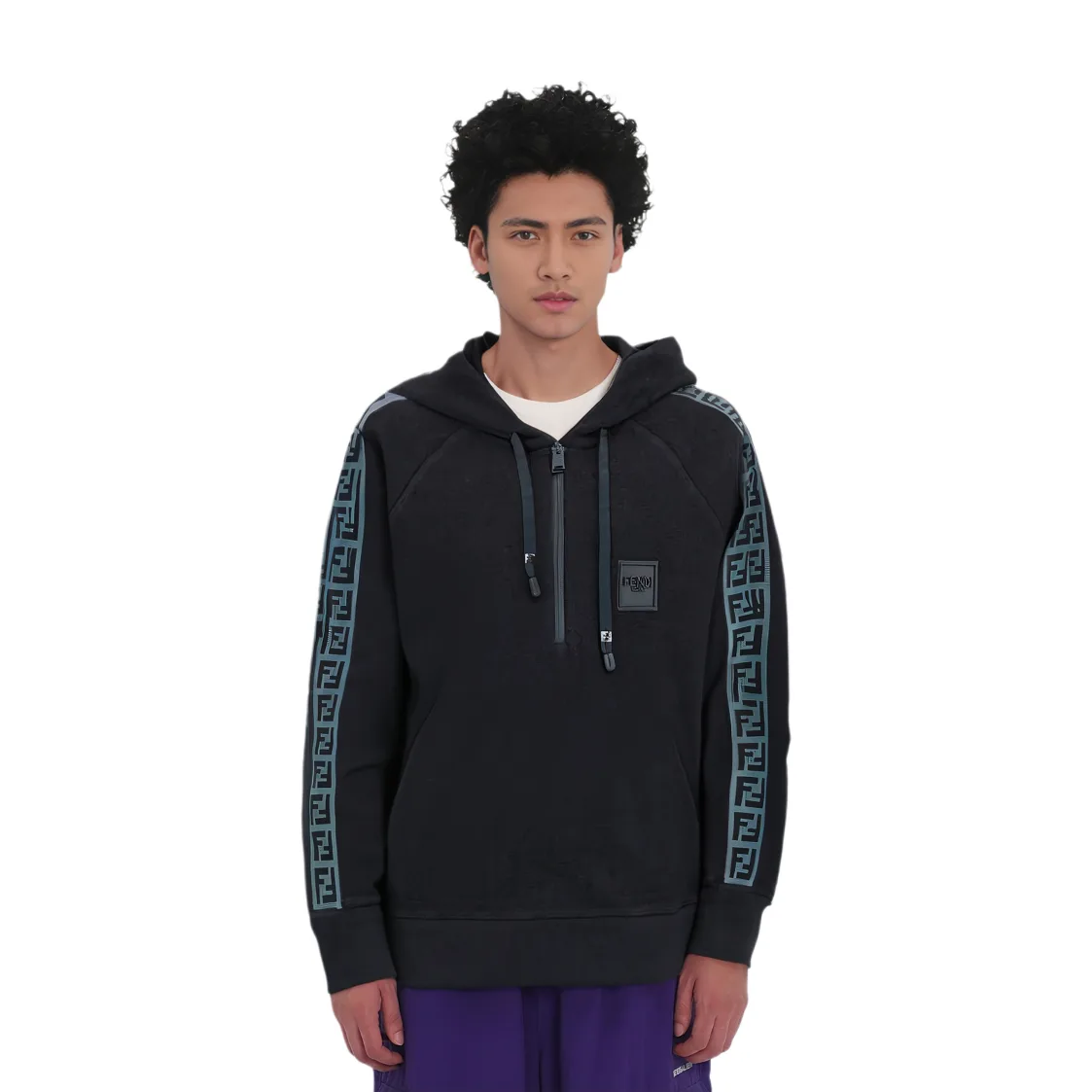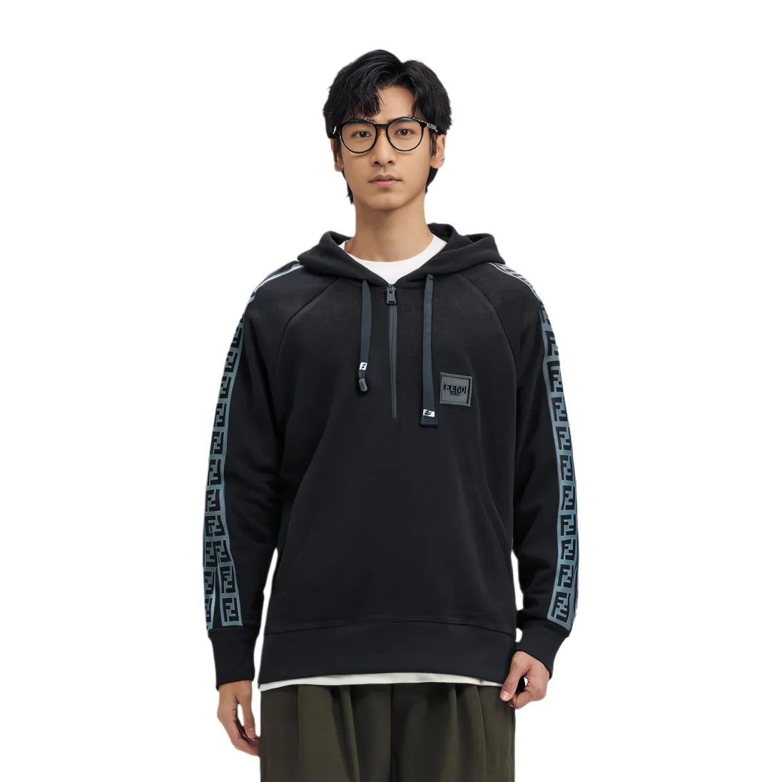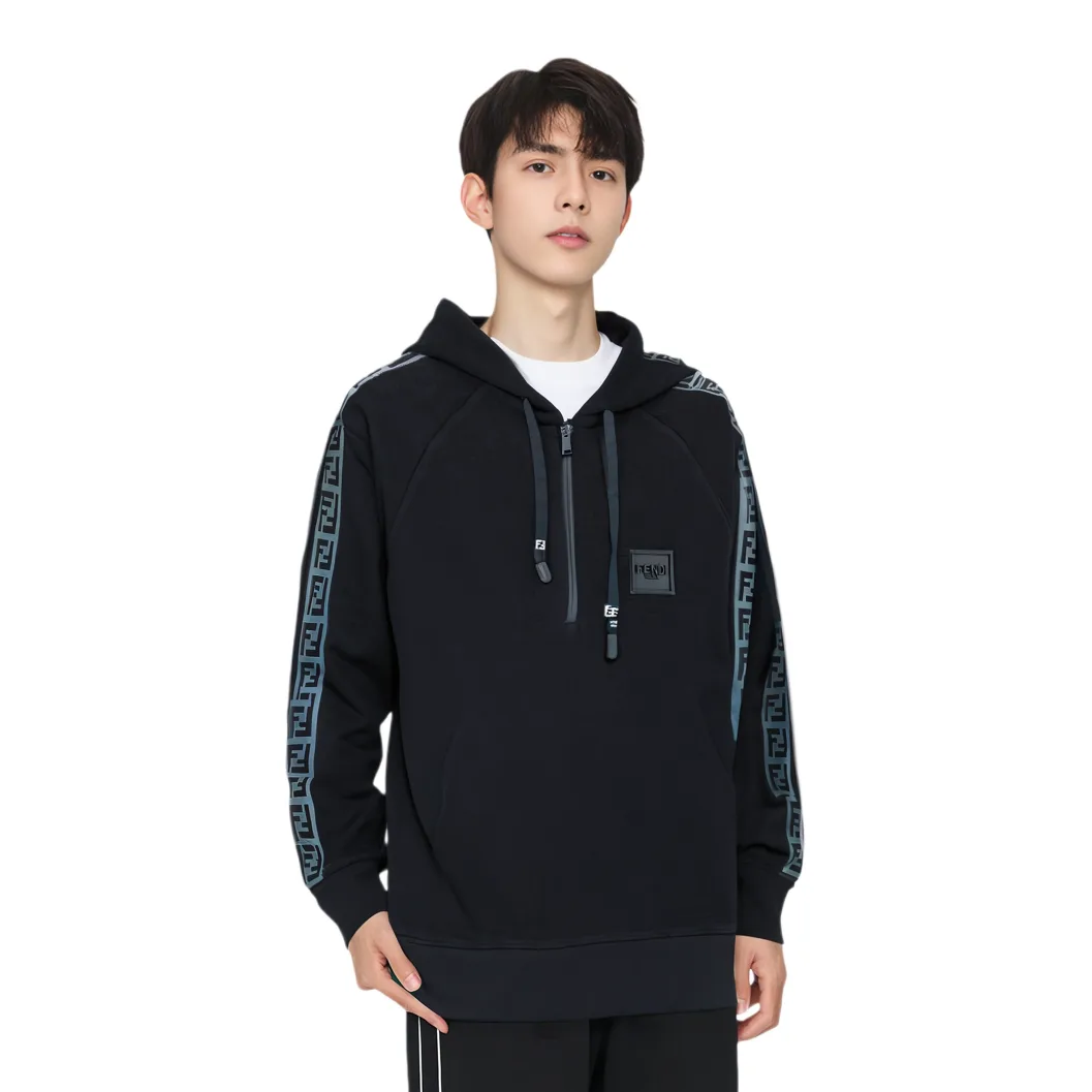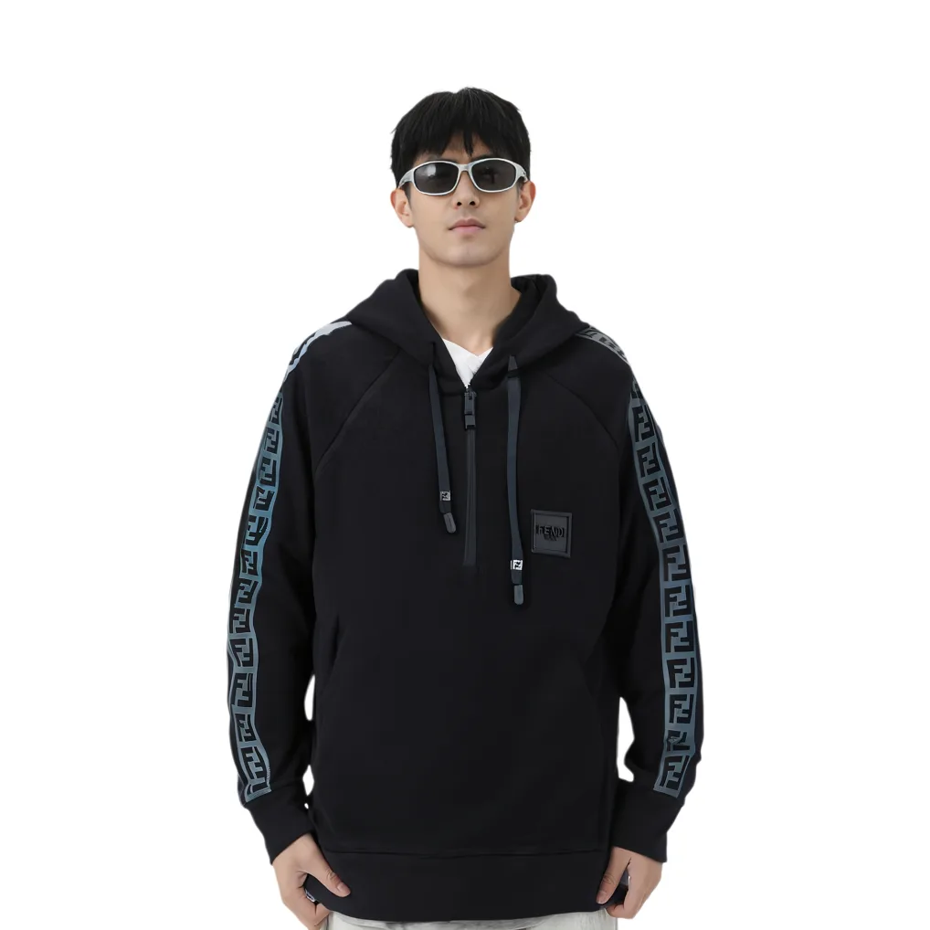 FENDI Толстовка мужская черная с капюшоном Moderate Regular