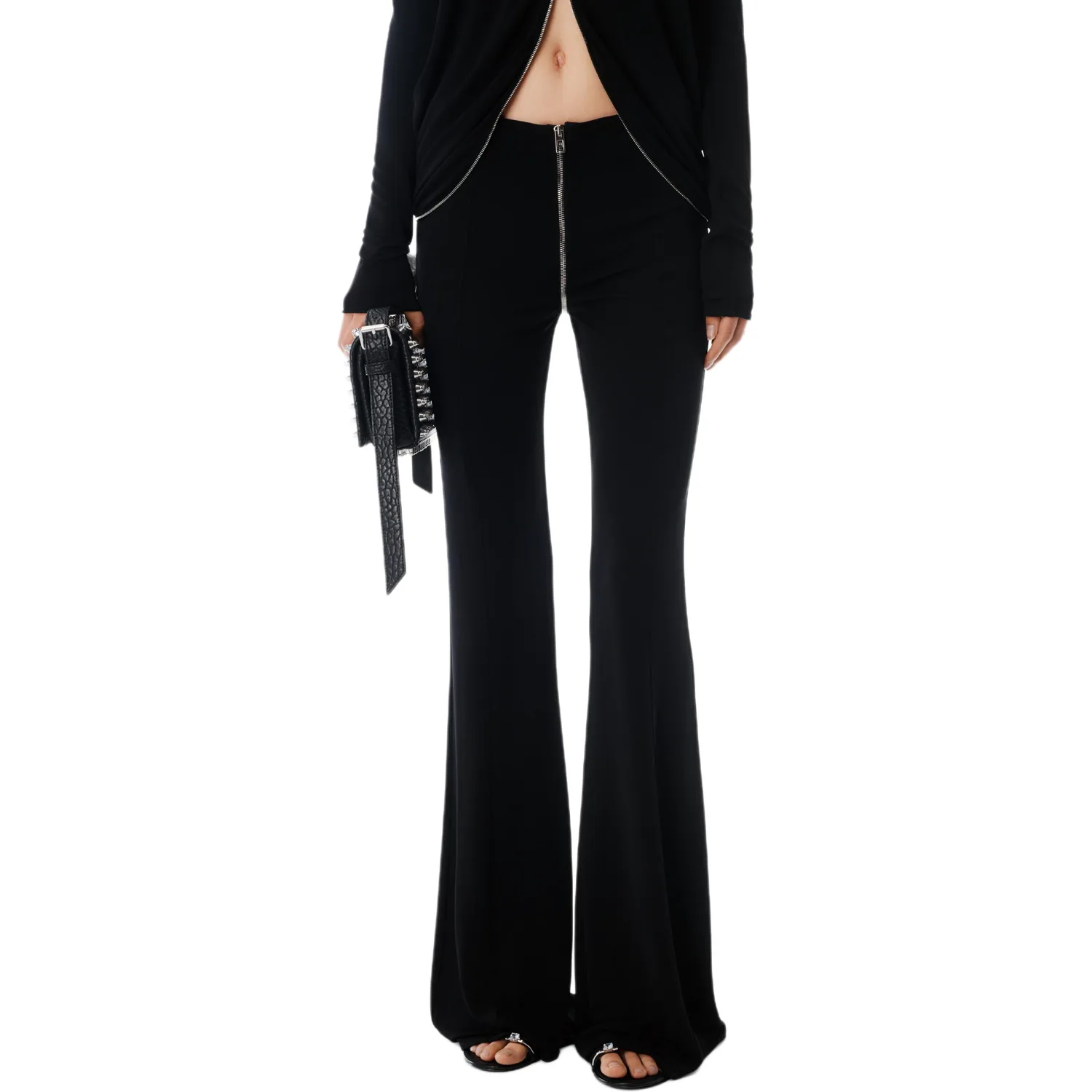Брюки-клеш с молнией Alexander Wang, черный