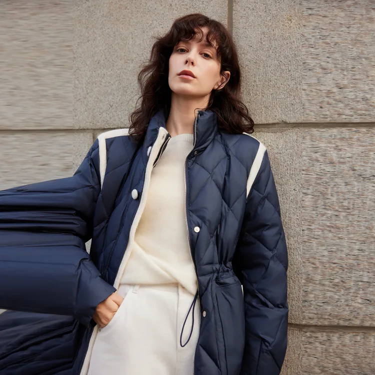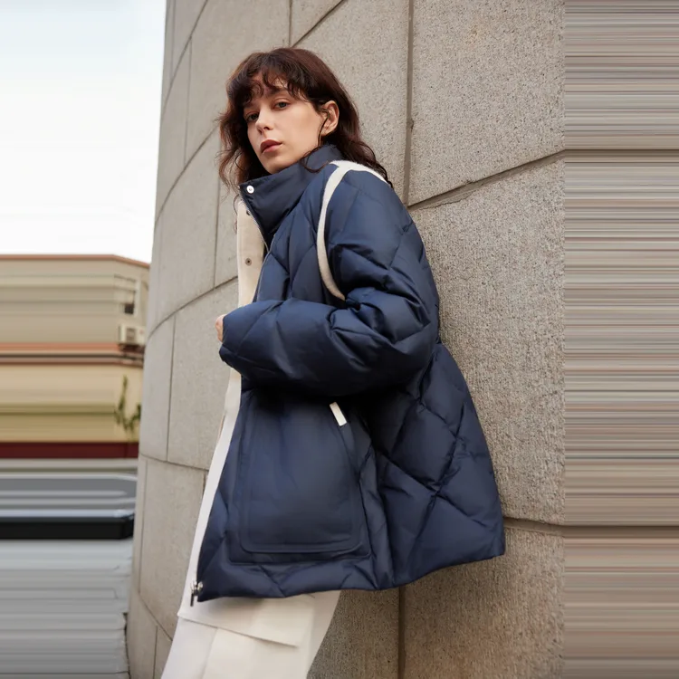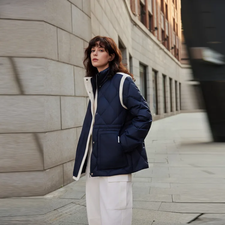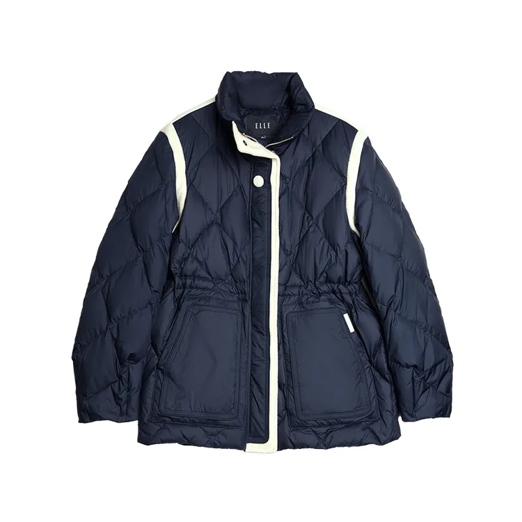 ELLE Пуховик Women's Navy Blue Stand Collar Thickened