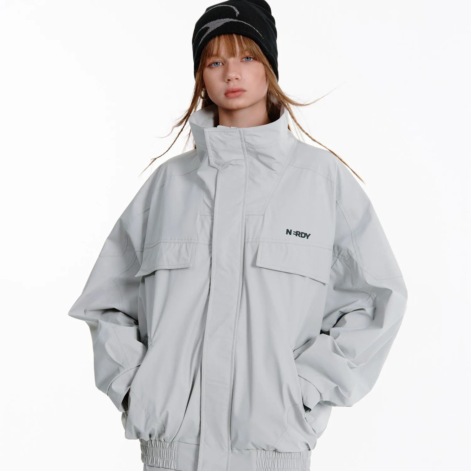 Nerdy Куртка Unisex Gray Stand Collar Moderate Workwear