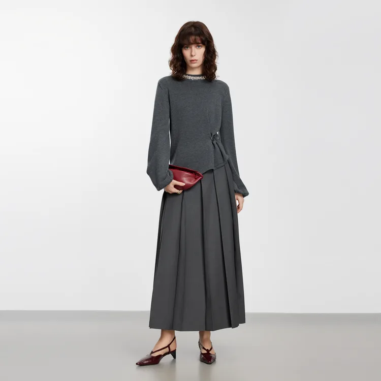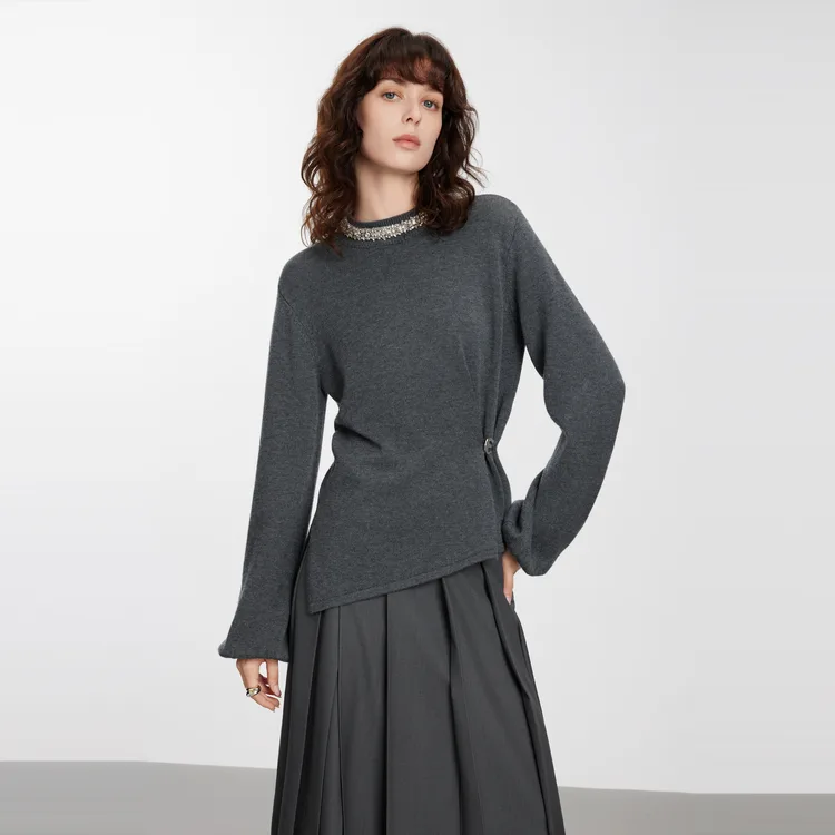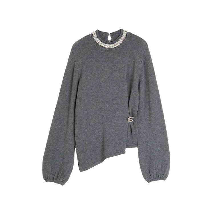 ELLE Свитер Women's Dark Gray Crew Neck Moderate Irregular