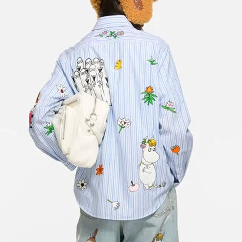 Рубашка в полоску с вышивкой Acne Studios, синий 53 505₽