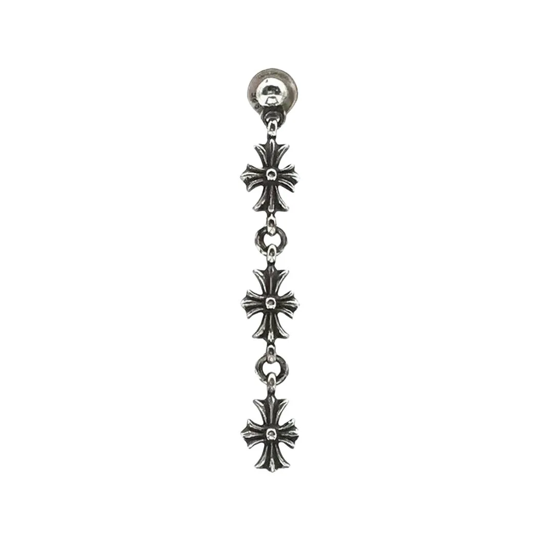 Серьга-гвоздик Tiny E Plus 3 drop Chrome Hearts, серебро 124 034₽