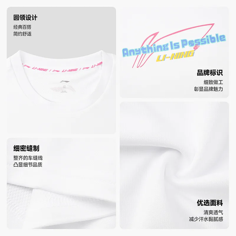 Li-Ning T Shirts Unisex White Crew Neck