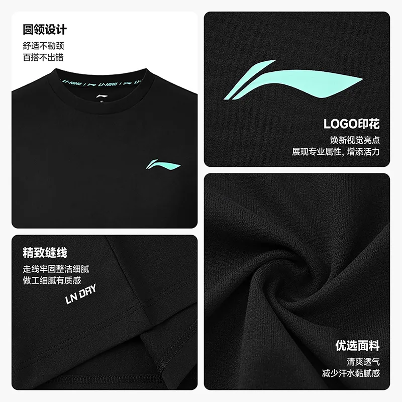 Li-Ning T Shirts Unisex Black Crew Neck 3 506₽