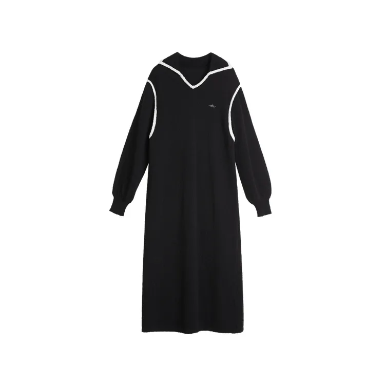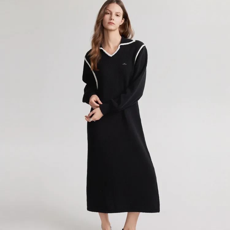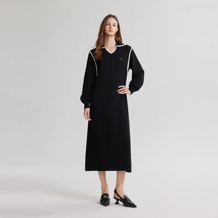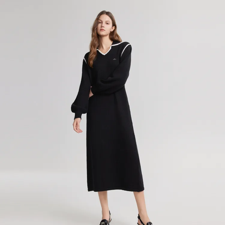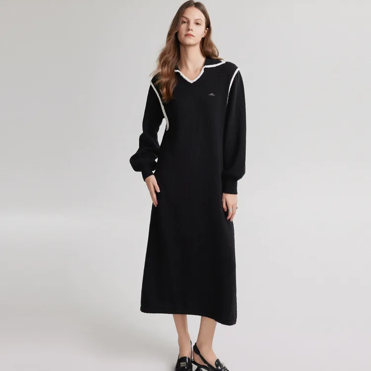 ELLE Женское черное платье с длинным рукавом