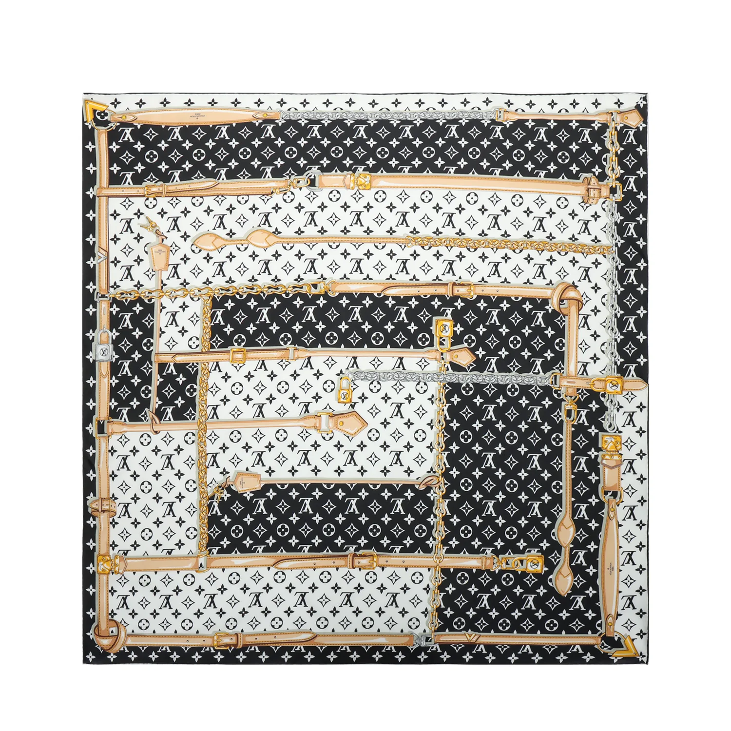 LOUIS VUITTON Шарф Monogram Confidential Silk Unisex Black
