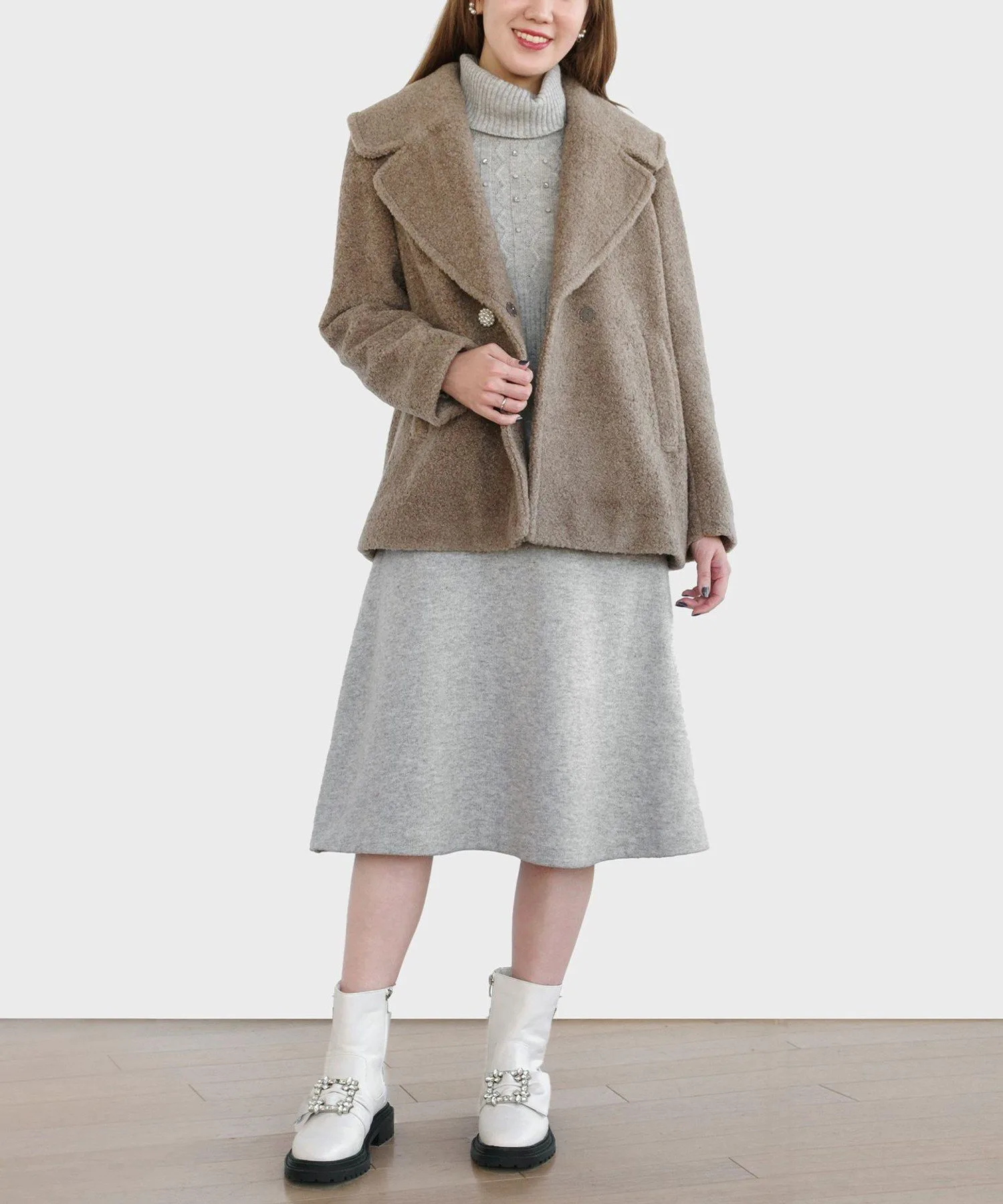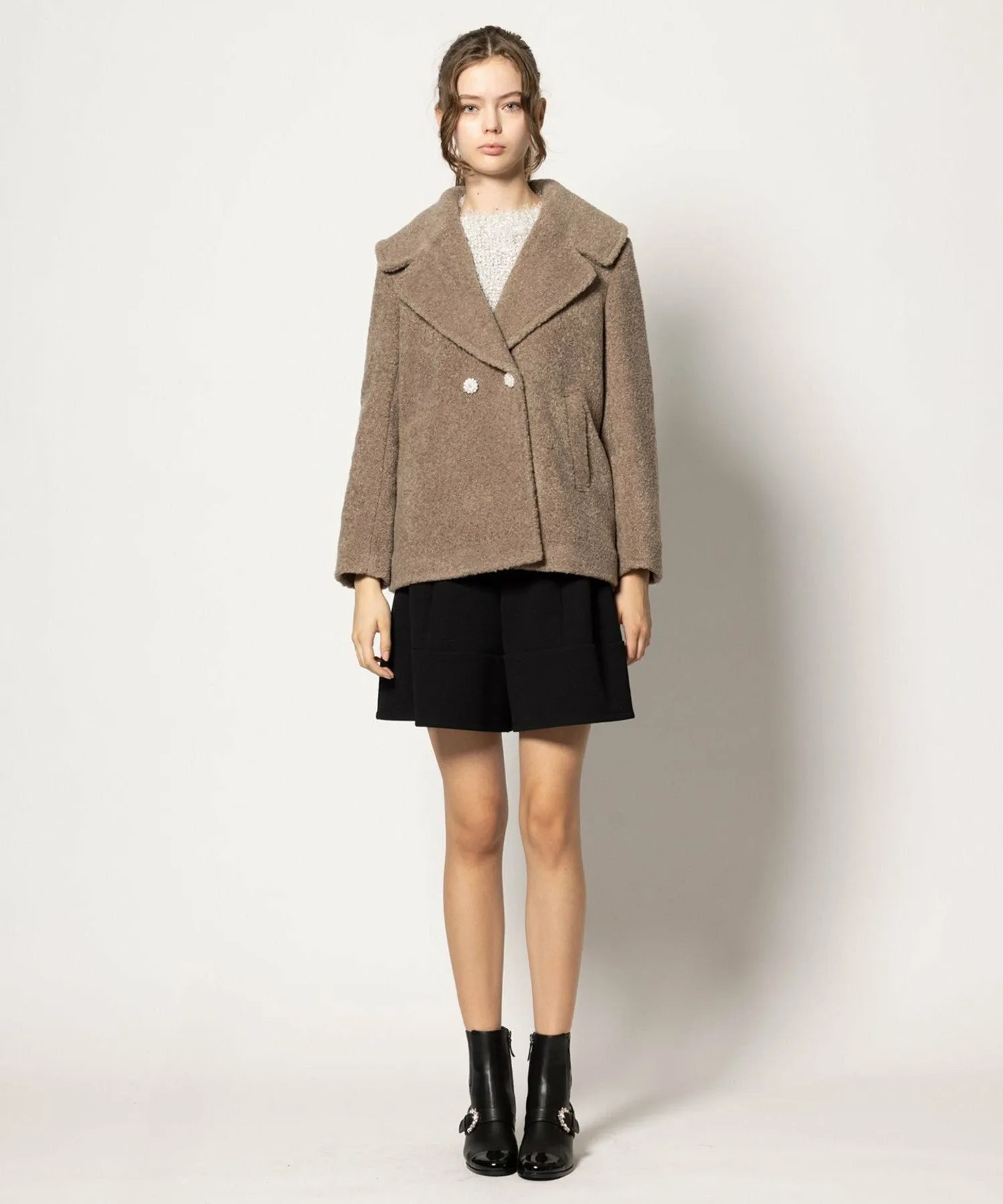 Очаровательное пушистое пальто из материала, похожего на пену.