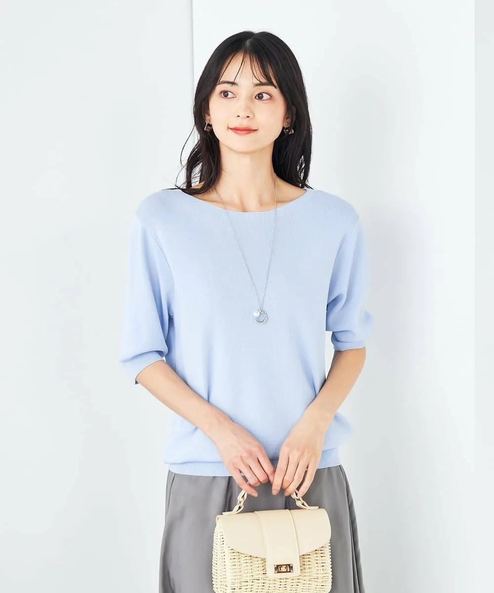 Летний трикотаж с вырезом-лодочкой и пышными рукавами: K2FGA69039
