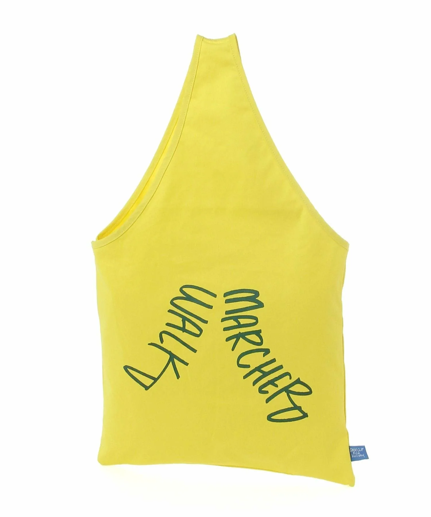 Принт выполнен в легком, воздушном стиле, напоминающем слова «MARCHE» и «WALK» (walking).
