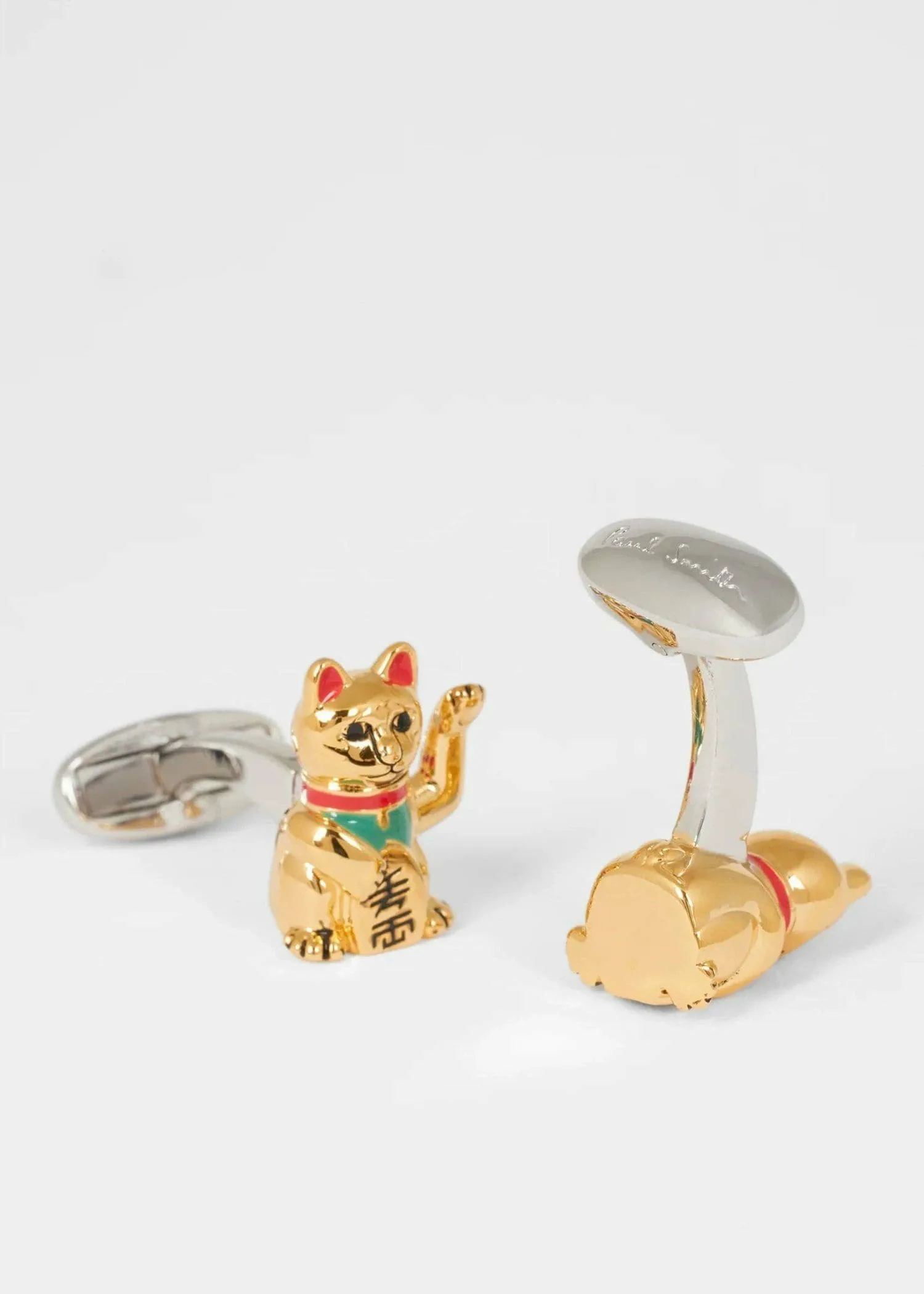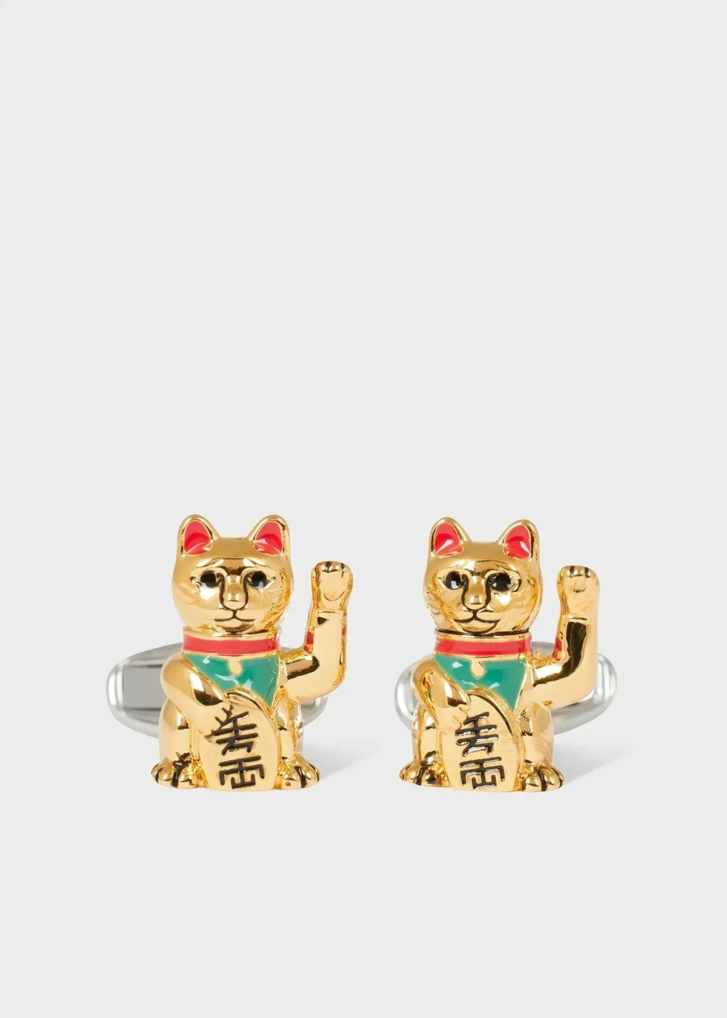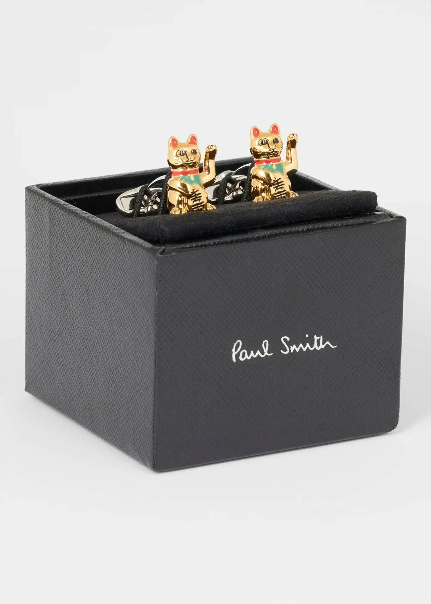 [Только в интернет-магазине и некоторых магазинах] Эти красивые золотистые запонки украшены изображением манящей кошки, держащей золотую монету «десять миллионов рё». Считается, что они приносят удачу и привлекают множество гостей, поэтому, надевая их, вы почувствуете, что удача уже близко. Логотип Paul Smith выгравирован на Т-образной застежке. Они добавят игривости и привлекательности вашим рукавам, подчеркнув ваш стиль. Запонки поставляются в подарочной коробке, что делает их отличным подарком. Сделано в Китае. *Пожалуйста, ознакомьтесь с прилагаемой инструкцией «Меры предосторожности при обращении». *После использования протрите пот и грязь мягкой тканью и храните в месте с низкой влажностью, избегая прямых солнечных лучей и пыли. *Из-за особенностей материала возможно изменение цвета при воздействии дезинфицирующих средств, гелей, мыла для рук и т. д., поэтому используйте их с осторожностью.