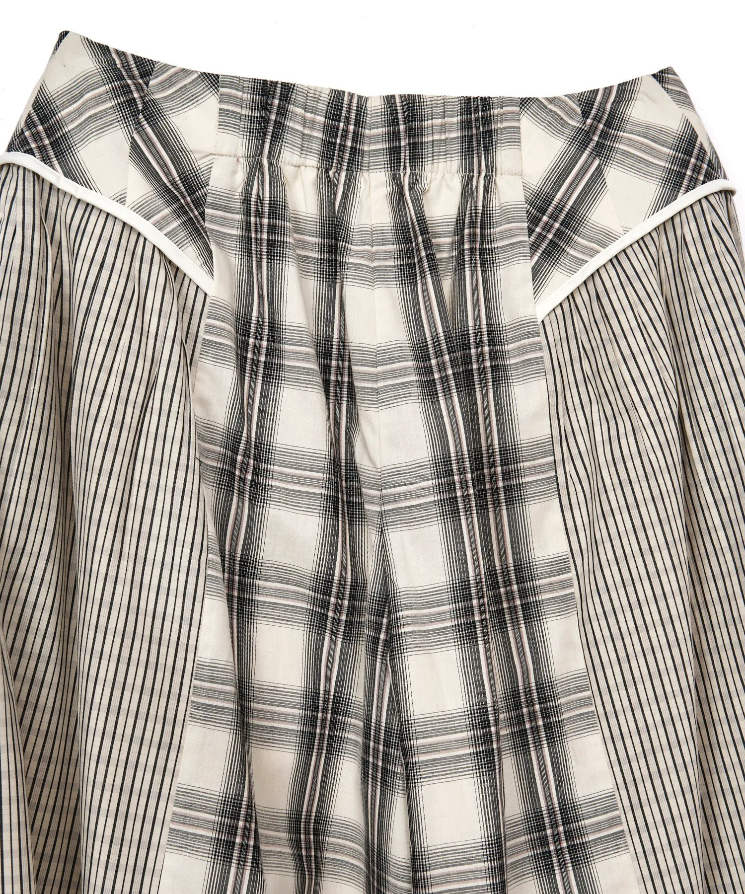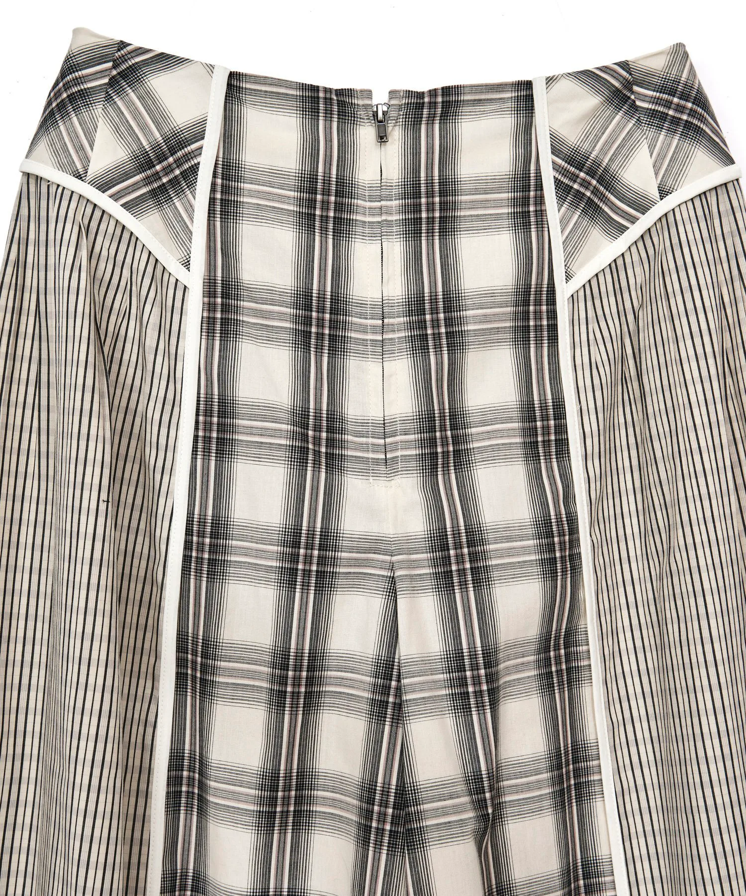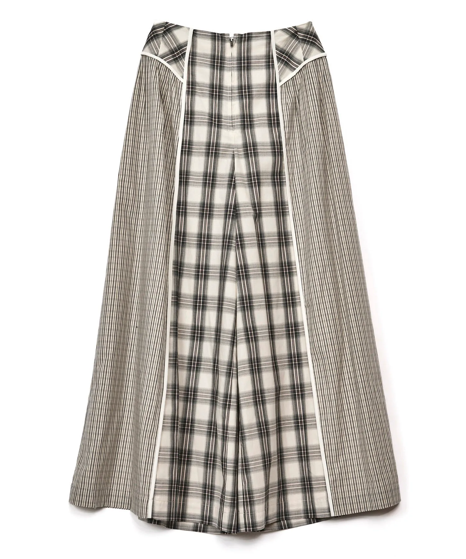 Комбинированные широкие брюки с таким же рисунком молнии, как и у рубашки.