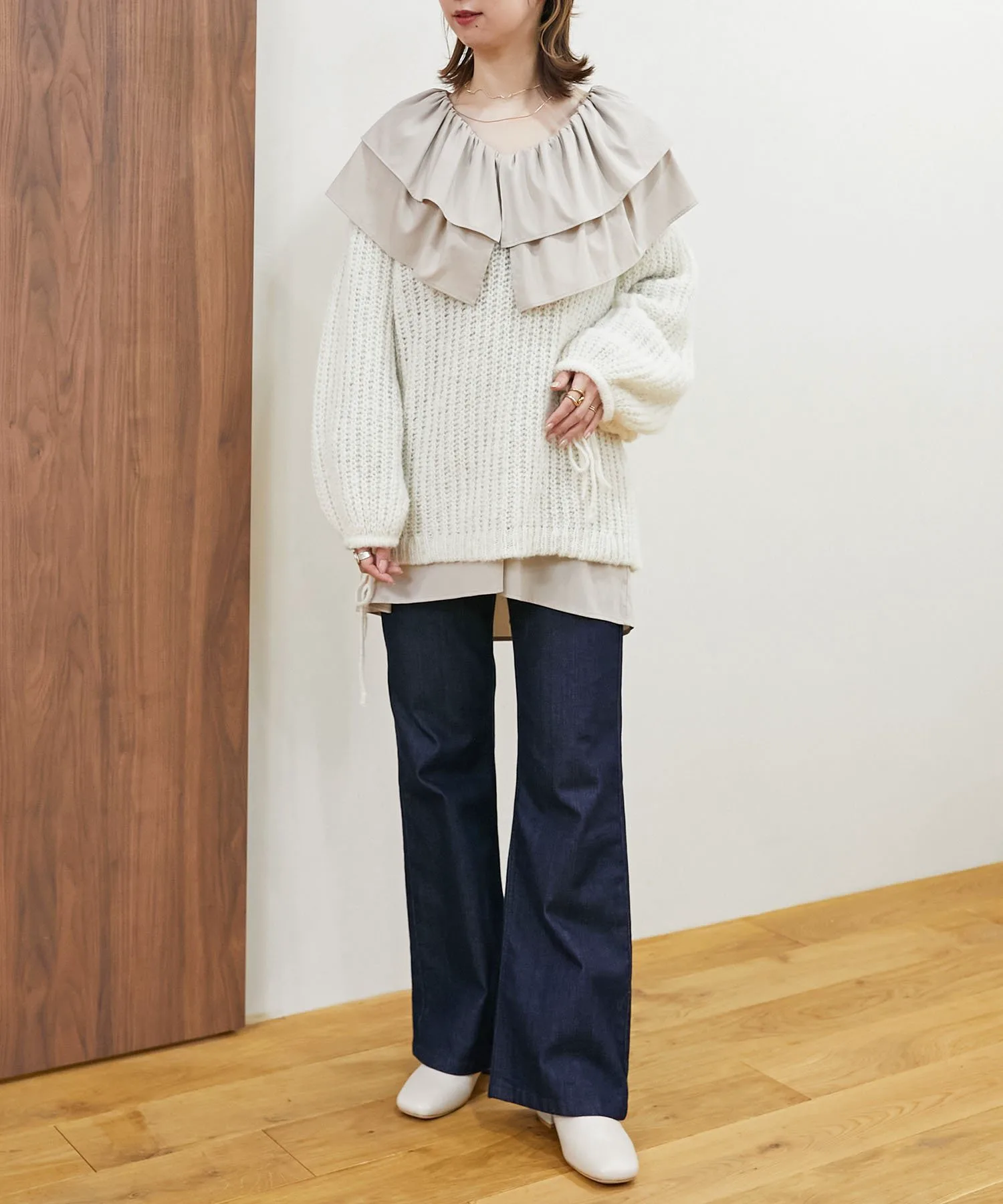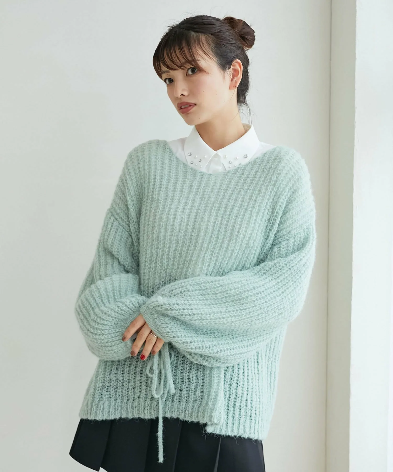 Свободный силуэт рукавов и детали из лент придают ему женственный вид◎