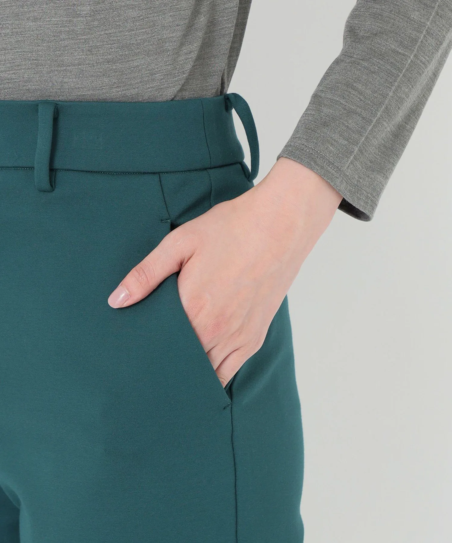 Для внешней ткани мы выбрали высокоэластичный материал, а уделив особое внимание внутренней структуре брюк и используя отдельную эластичную ткань, мы добились эффекта корсета, который удерживает нижнюю часть живота на месте.