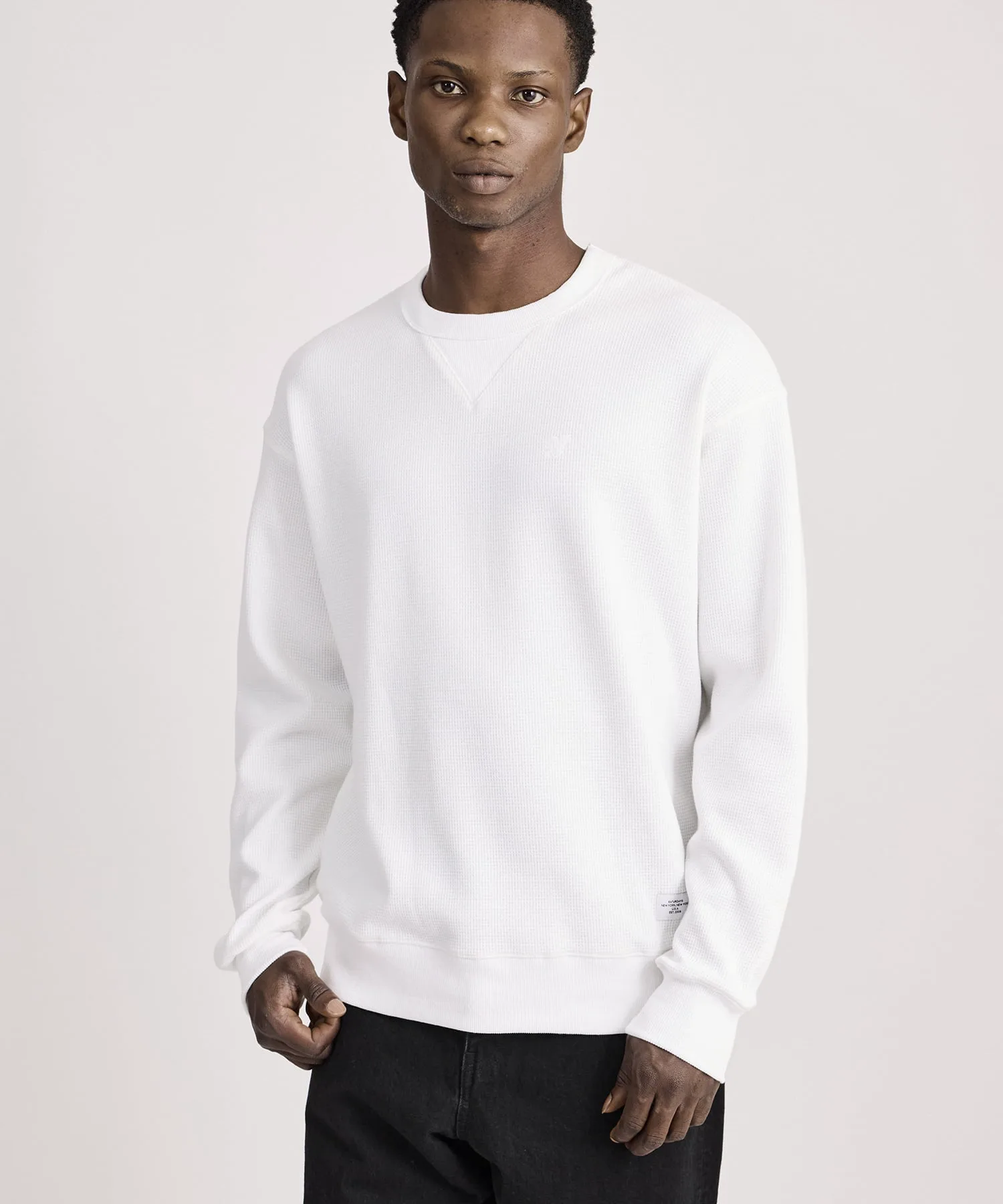 Футболка с длинными рукавами в винтажном стиле, с V-образной вставкой и ребристой отделкой, выполнена из вафельного полотна.