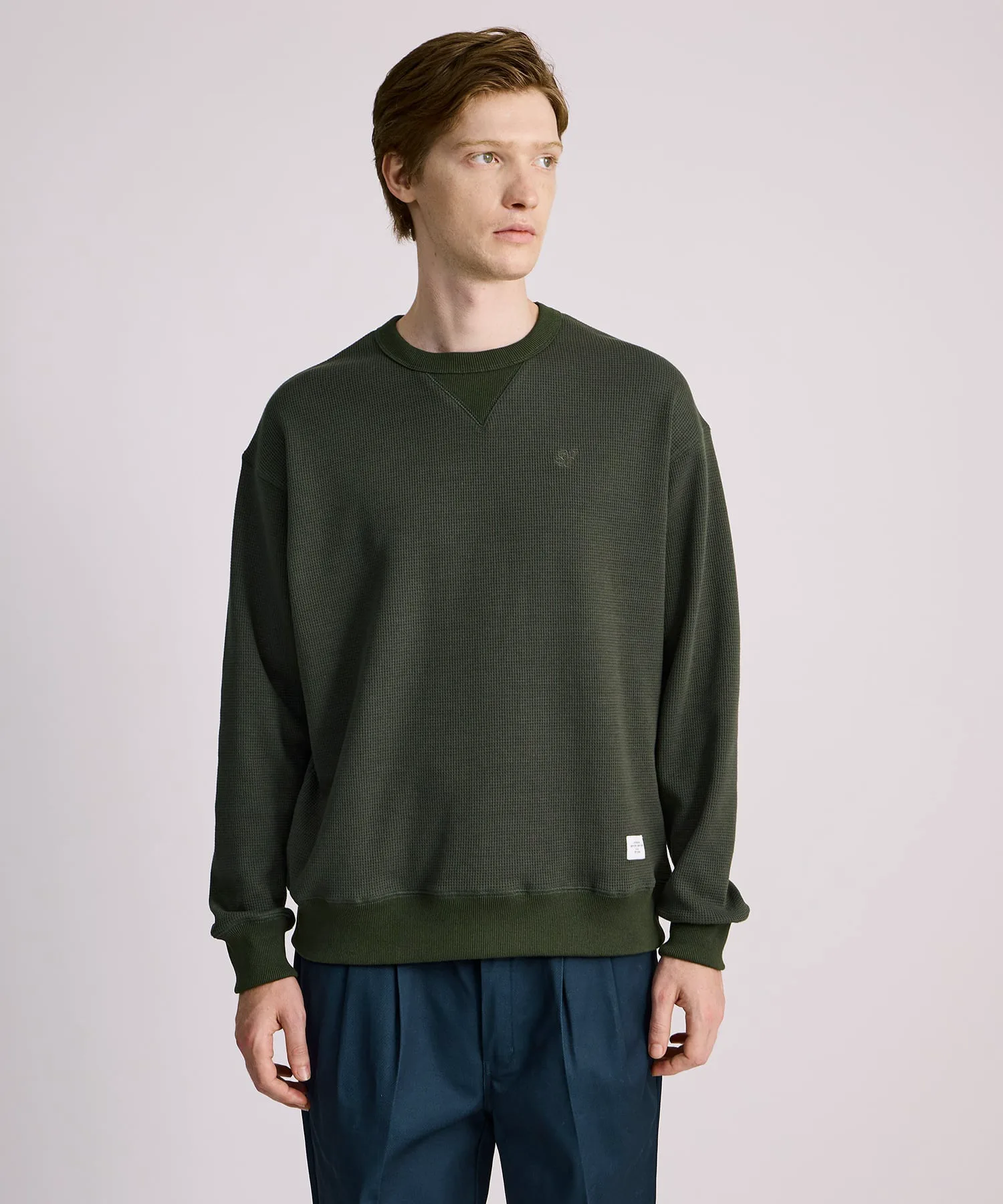 Футболка с длинными рукавами в винтажном стиле, с V-образной вставкой и ребристой отделкой, выполнена из вафельного полотна.