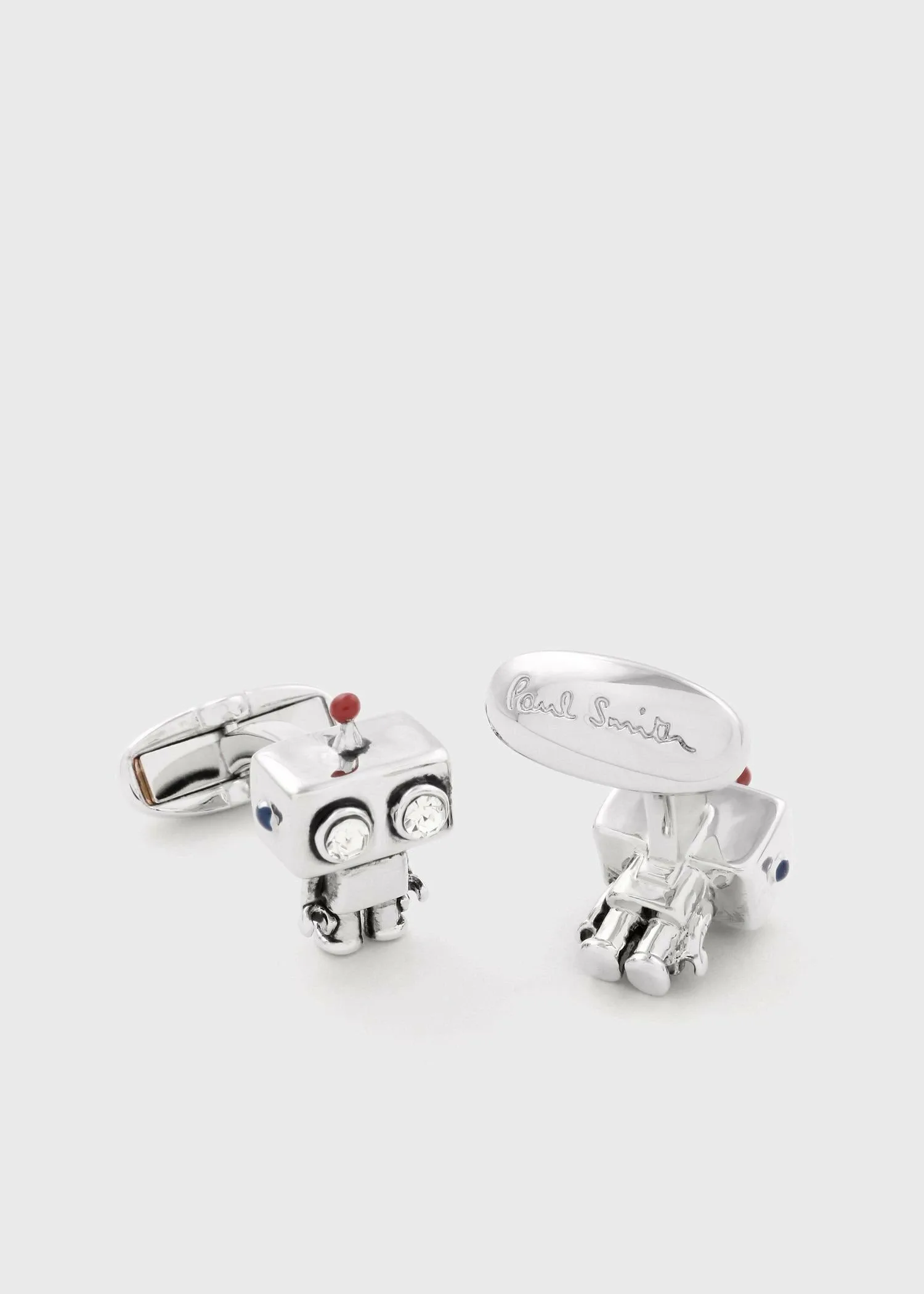[Только в интернет-магазине и некоторых магазинах] Эти запонки выполнены в ретро-стиле с милым роботом. Очаровательный дизайн включает красные усики на голове и сверкающие круглые глаза. Логотип Paul Smith вытиснен на Т-образной застежке. Они добавят игривости и привлекательности рукавам, подчеркнув ваш стиль. Запонки поставляются в подарочной коробке, что делает их отличным подарком. Сделано в Китае. *Пожалуйста, ознакомьтесь с прилагаемой инструкцией «Меры предосторожности при обращении». *После использования протрите пот и грязь мягкой тканью и храните в месте с низкой влажностью, вдали от прямых солнечных лучей и пыли. *Из-за особенностей материала возможно изменение цвета при воздействии дезинфицирующих средств, гелей, мыла для рук и т. д., поэтому используйте их с осторожностью.