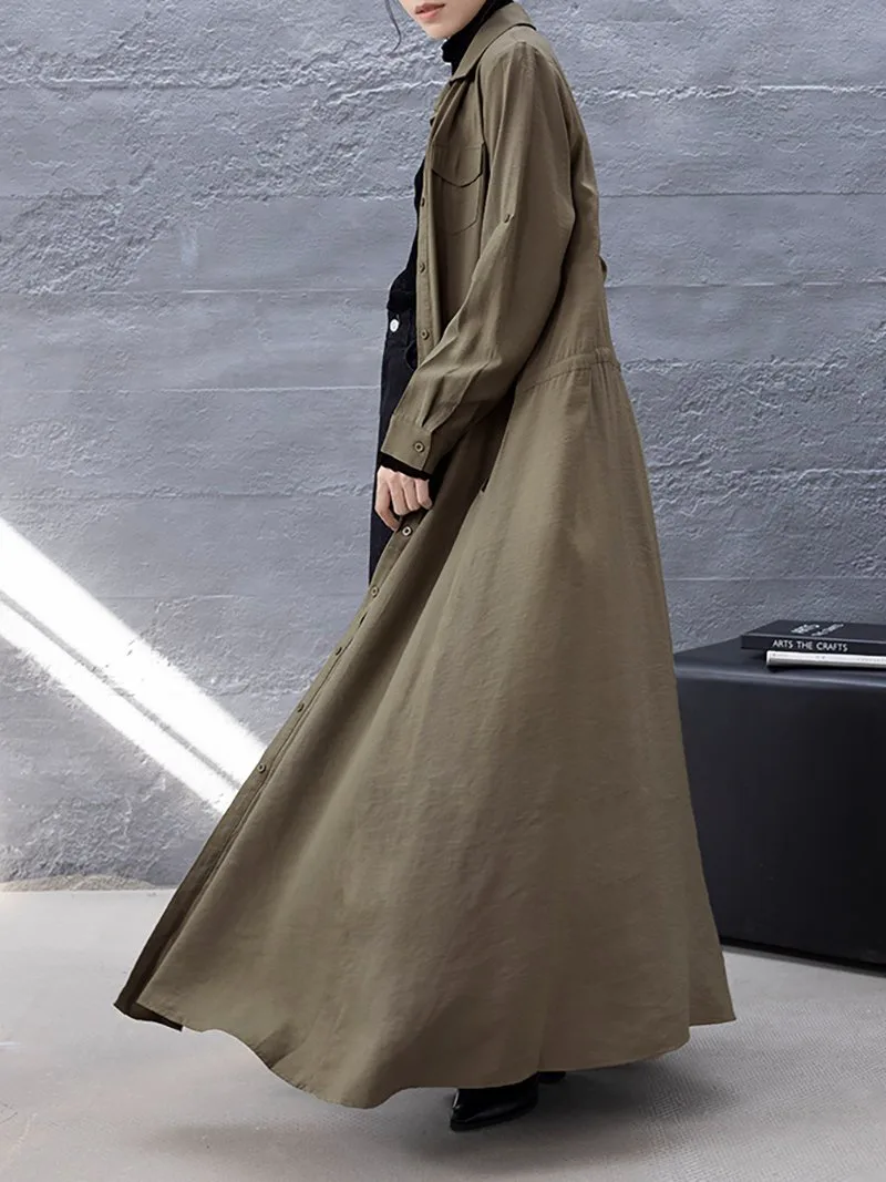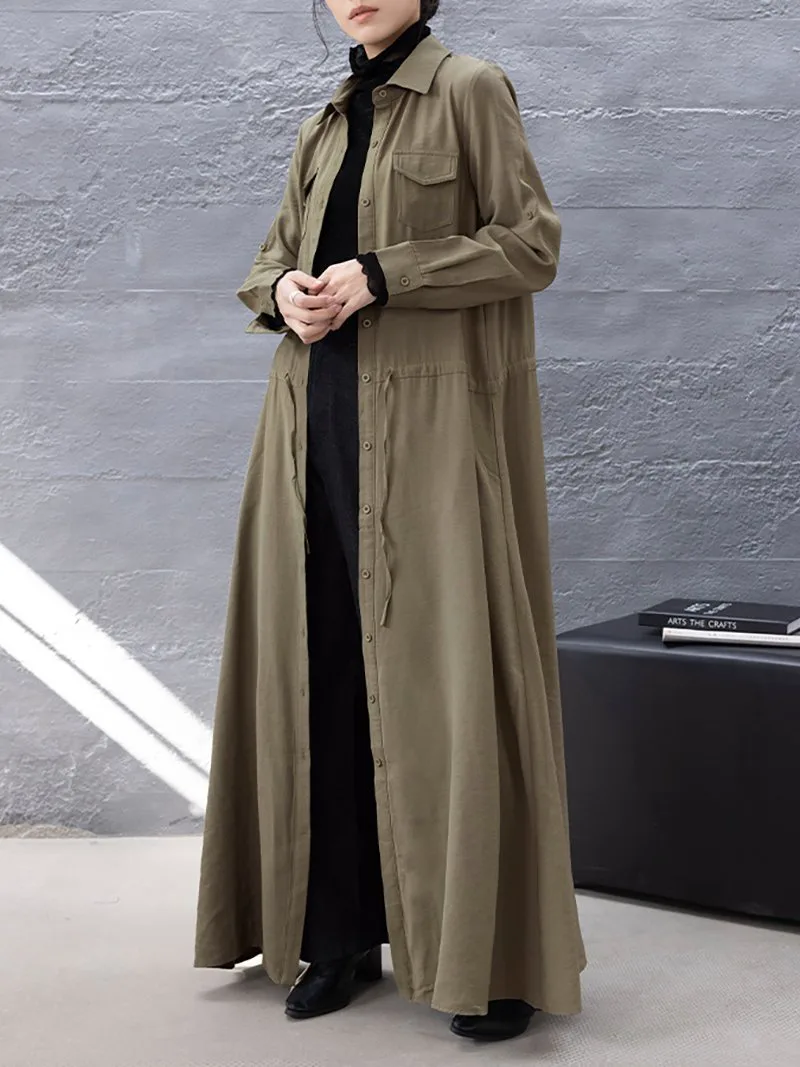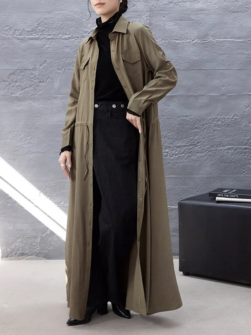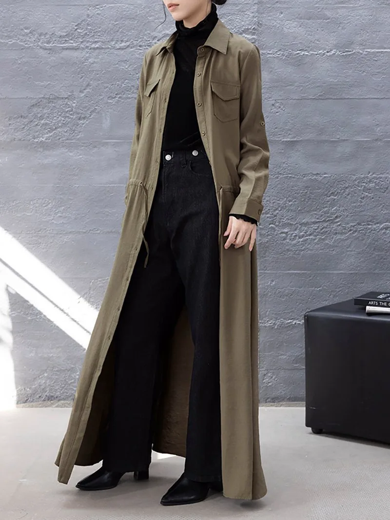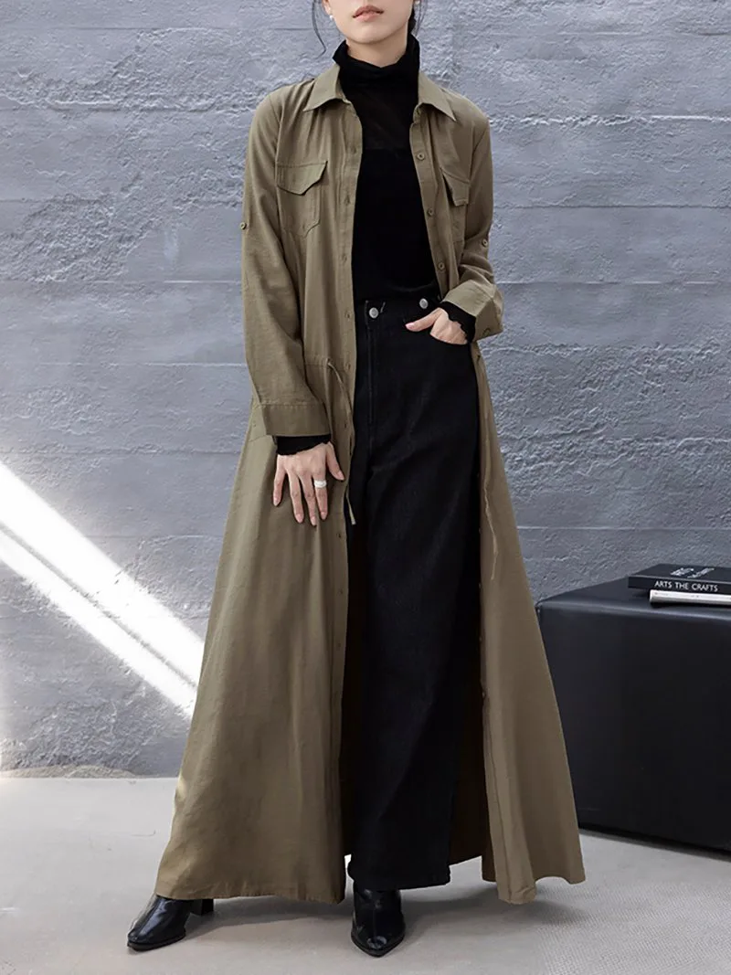 Свободный, длинный крой добавляет объема, а пояс на талии придает аккуратный и опрятный вид.