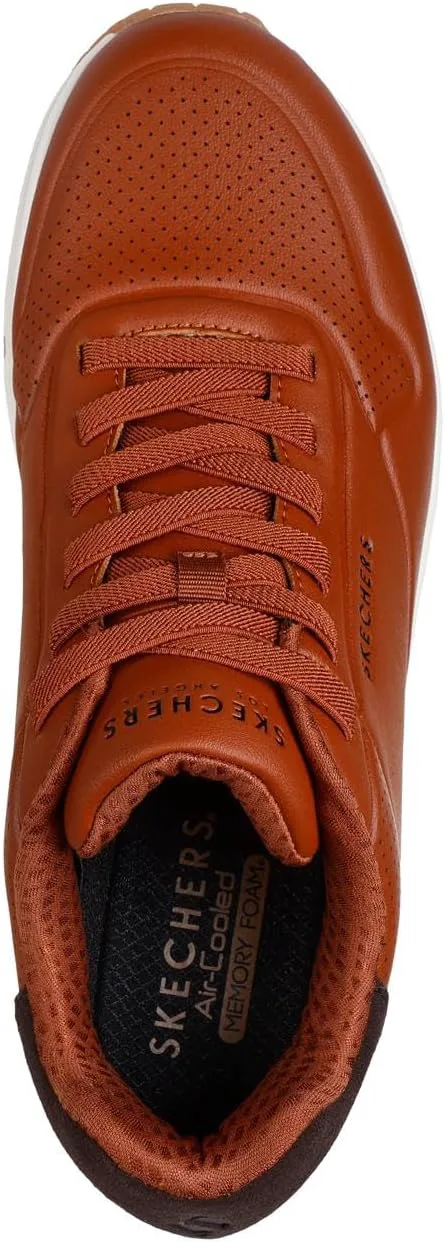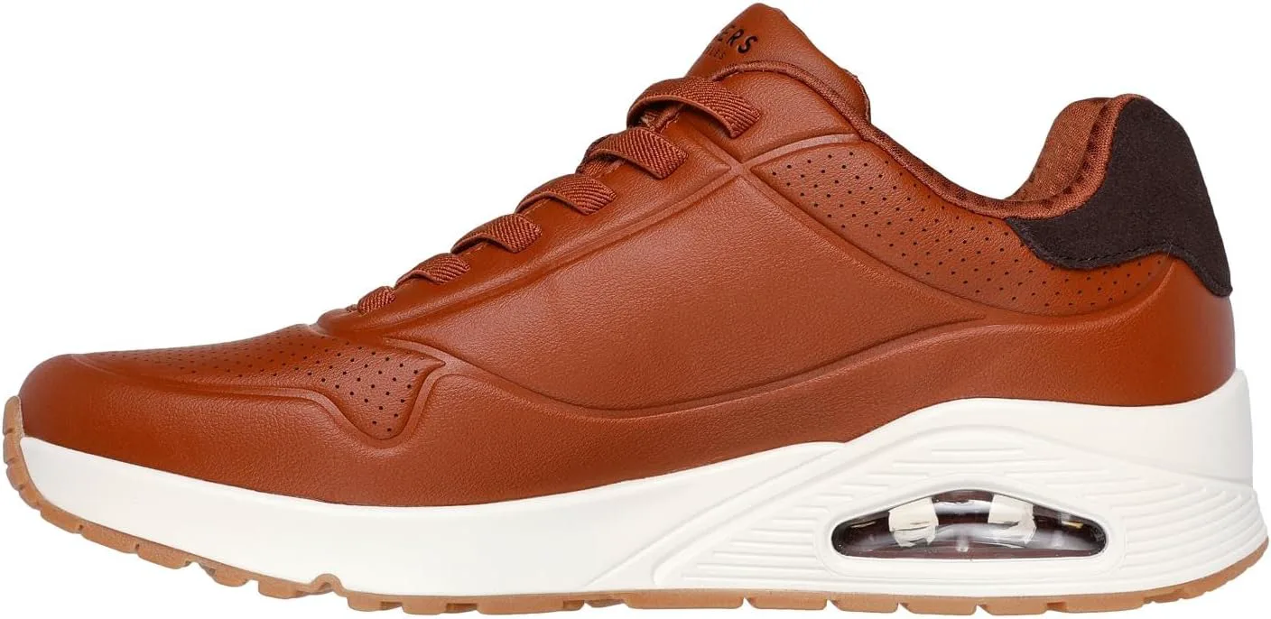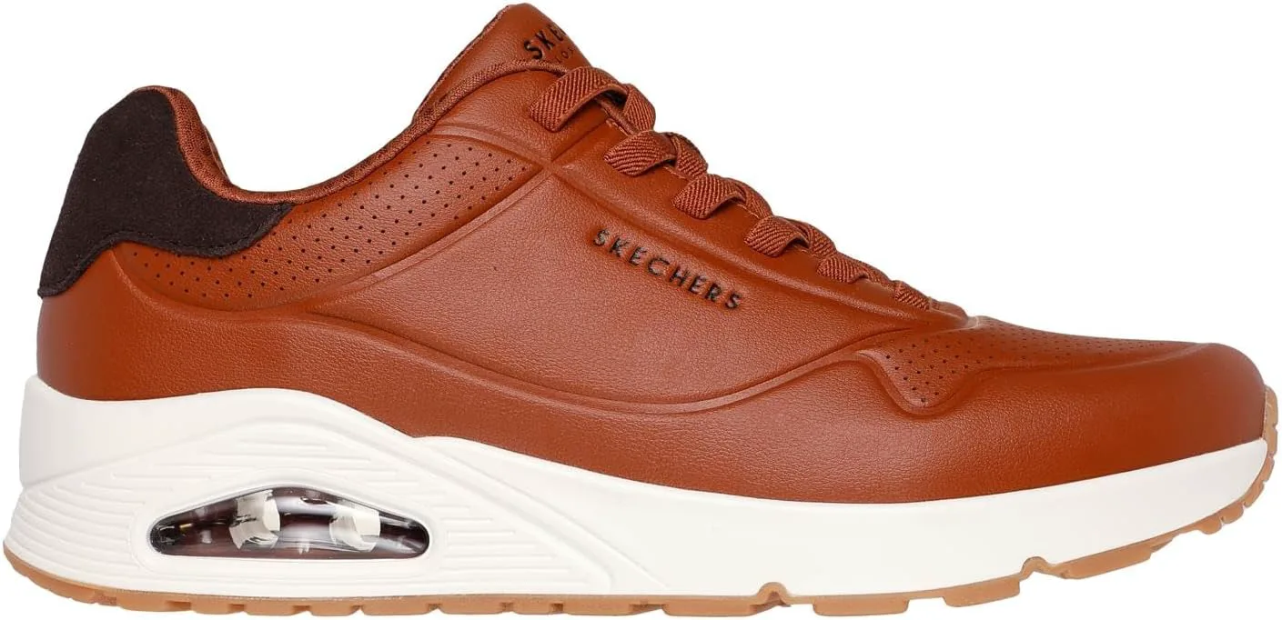 Стелька с амортизирующим эффектом из пены с охлаждающим воздухом Skechers Air-Cooled Memory Foam Средняя подошва Skech-Air с видимой воздушной подушкой Гибкая резиновая подошва для сцепления Гладкий синтетический перфорированный верх из материала 'durabuck' Классический дизайн модных кроссовок на шнуровке