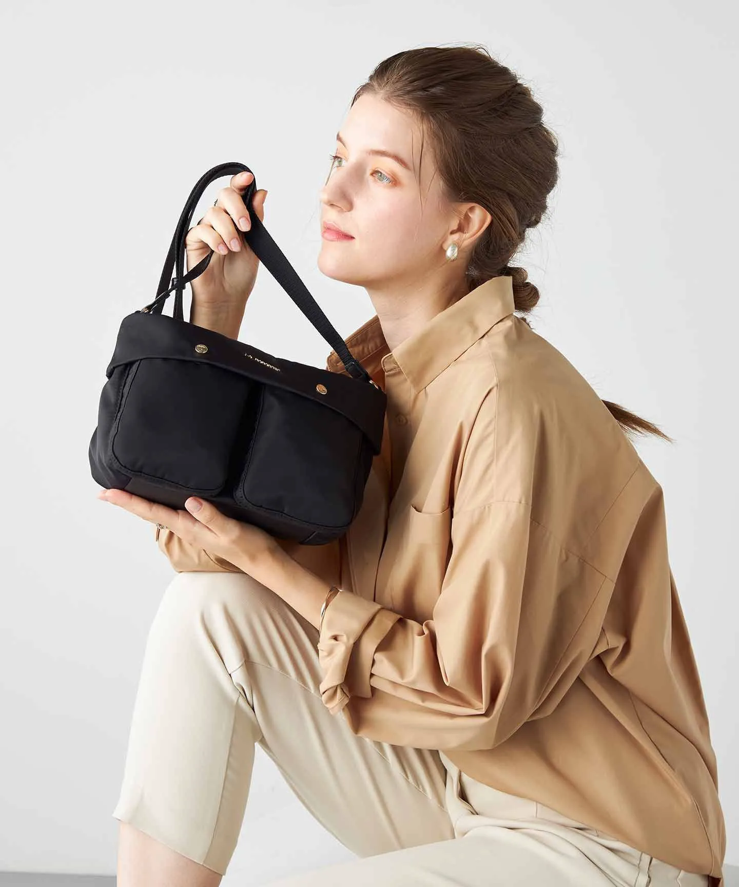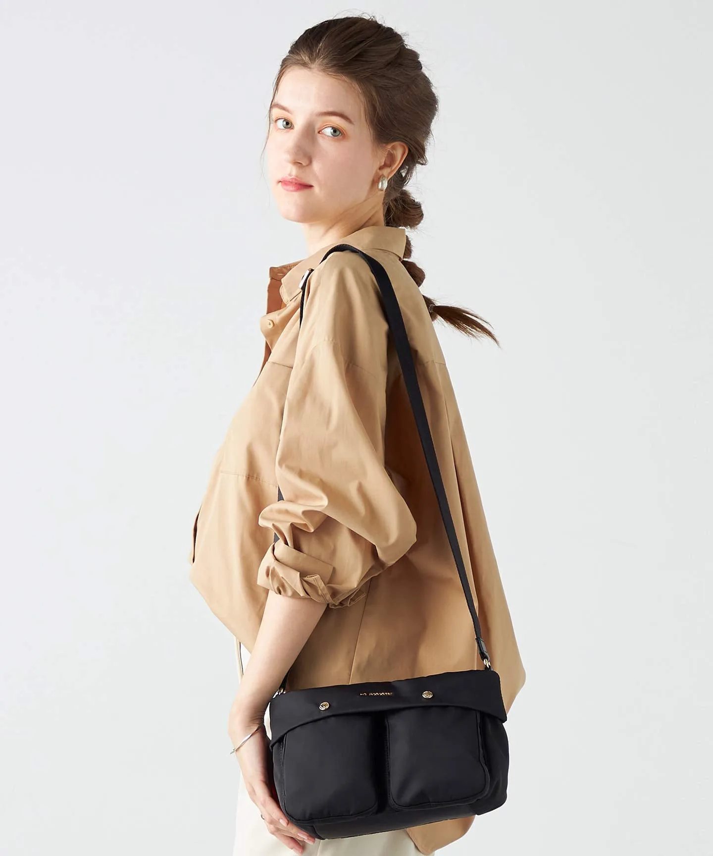 Эта мягкая на вид двусторонняя сумка через плечо имеет два передних кармана. Простой дизайн позволяет легко сочетать её с различными нарядами, делая её очень функциональной. Она изготовлена преимущественно из водоотталкивающего нейлона, что делает её устойчивой к небольшому дождю и загрязнениям, лёгкой и прочной. Внутреннее пространство имеет трёхслойную структуру, идеально подходящую для организации мелких предметов. Это обновлённая версия модели, изначально разработанной к 60-летию бренда. Внешние отделения: 2 магнитных кармана, 1 карман на молнии, 2 магнитных кармана-вставки. Внутренние отделения: 2 открытых кармана, 1 карман на молнии. Несмотря на то, что сумка изготовлена из водоотталкивающего материала, вода может просачиваться через швы и молнии. Обратите внимание, что водоотталкивающая обработка не является постоянной. Цвета могут отличаться от реальных из-за условий освещения. Цвет фактического продукта также может немного отличаться от изображения, отображаемого на экране вашего компьютера или смартфона. Спасибо за понимание.