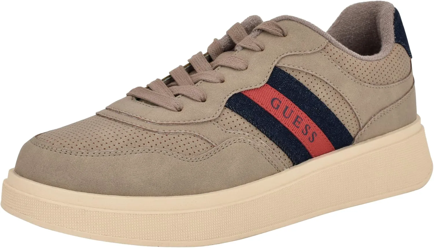 Эти модные кроссовки GUESS отличаются современным эстетичным дизайном с приподнятой подошвой, полосатой боковой панелью и перфорированными деталями. Эти кроссовки можно носить как в повседневной, так и в более нарядной одежде. Основанный в 1981 году, Guess является глобальным брендом образа жизни и символом молодой, авантюрной жизни.