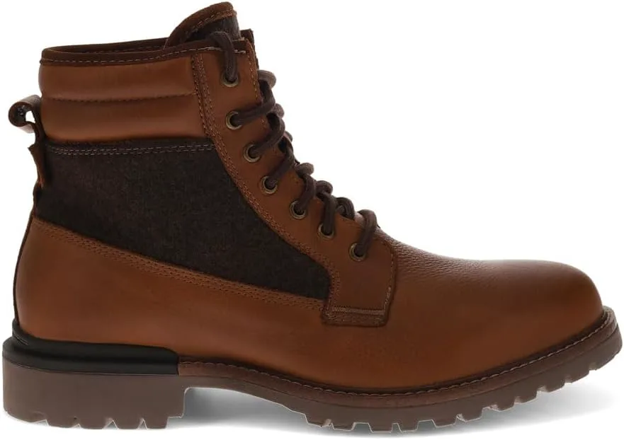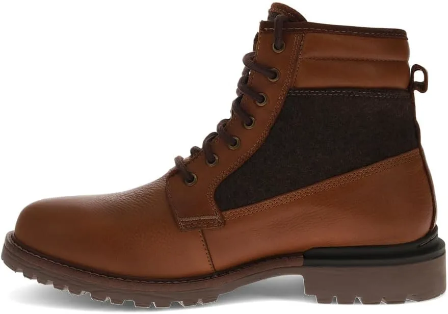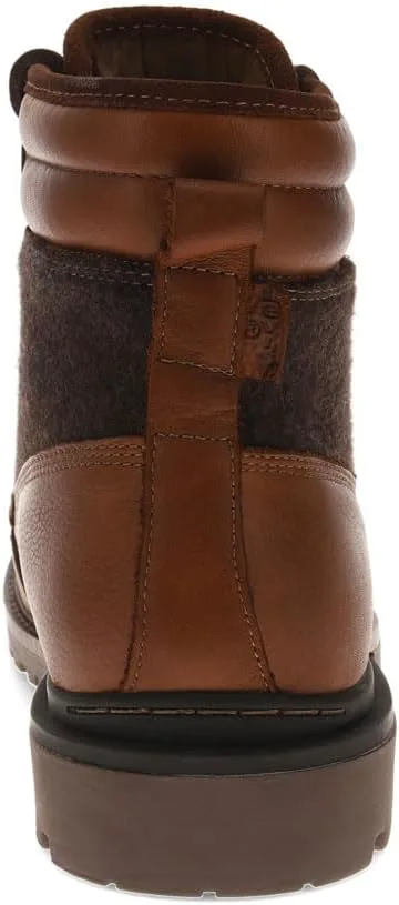 Tumbled leather and wool upper 11 hole lace-up closure with rugged metal eyelets Lightly padded collar for extra comfort Pull tab accent on the heel for an easy on and off the foot Durable rubber lug outsole for added traction