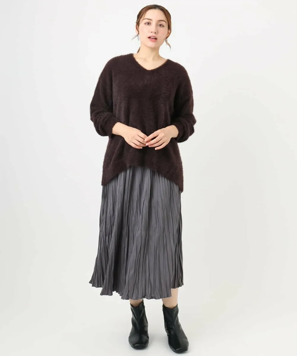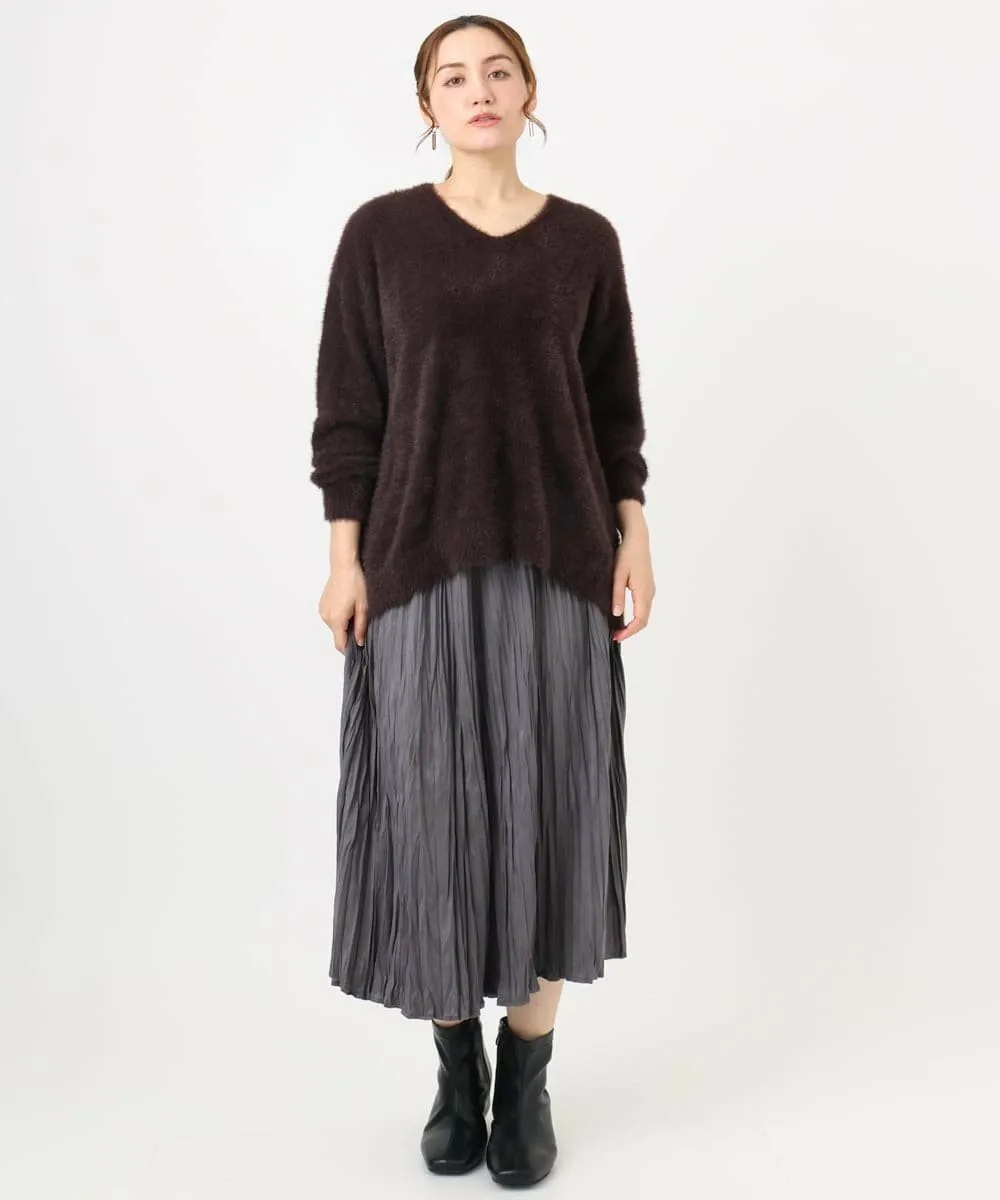Аккуратный V-образный вырез и свободный крой со спущенными плечами.