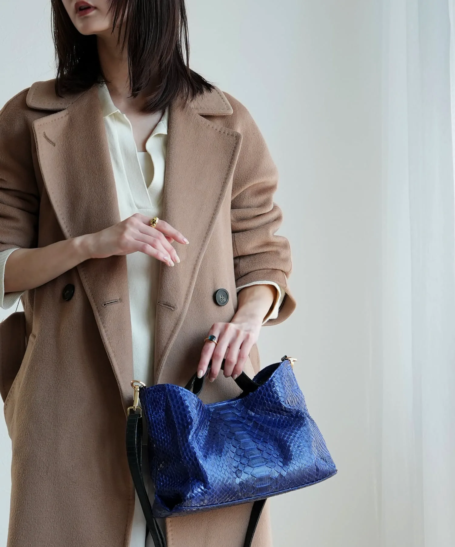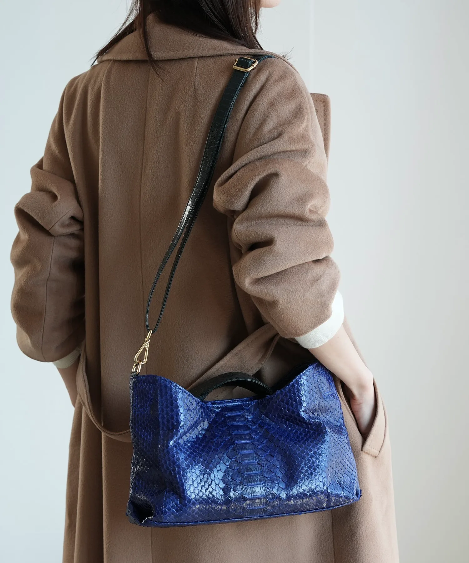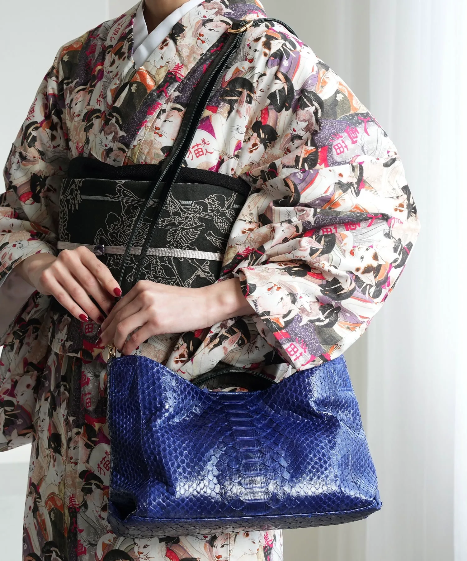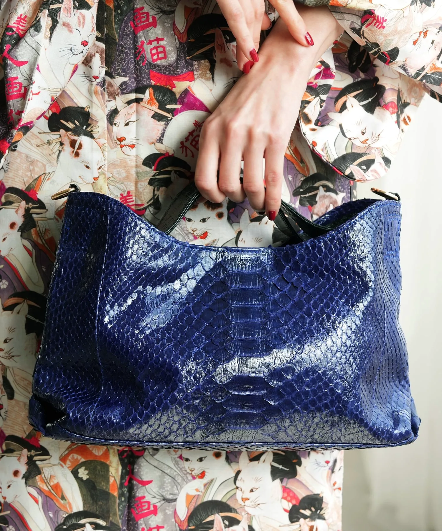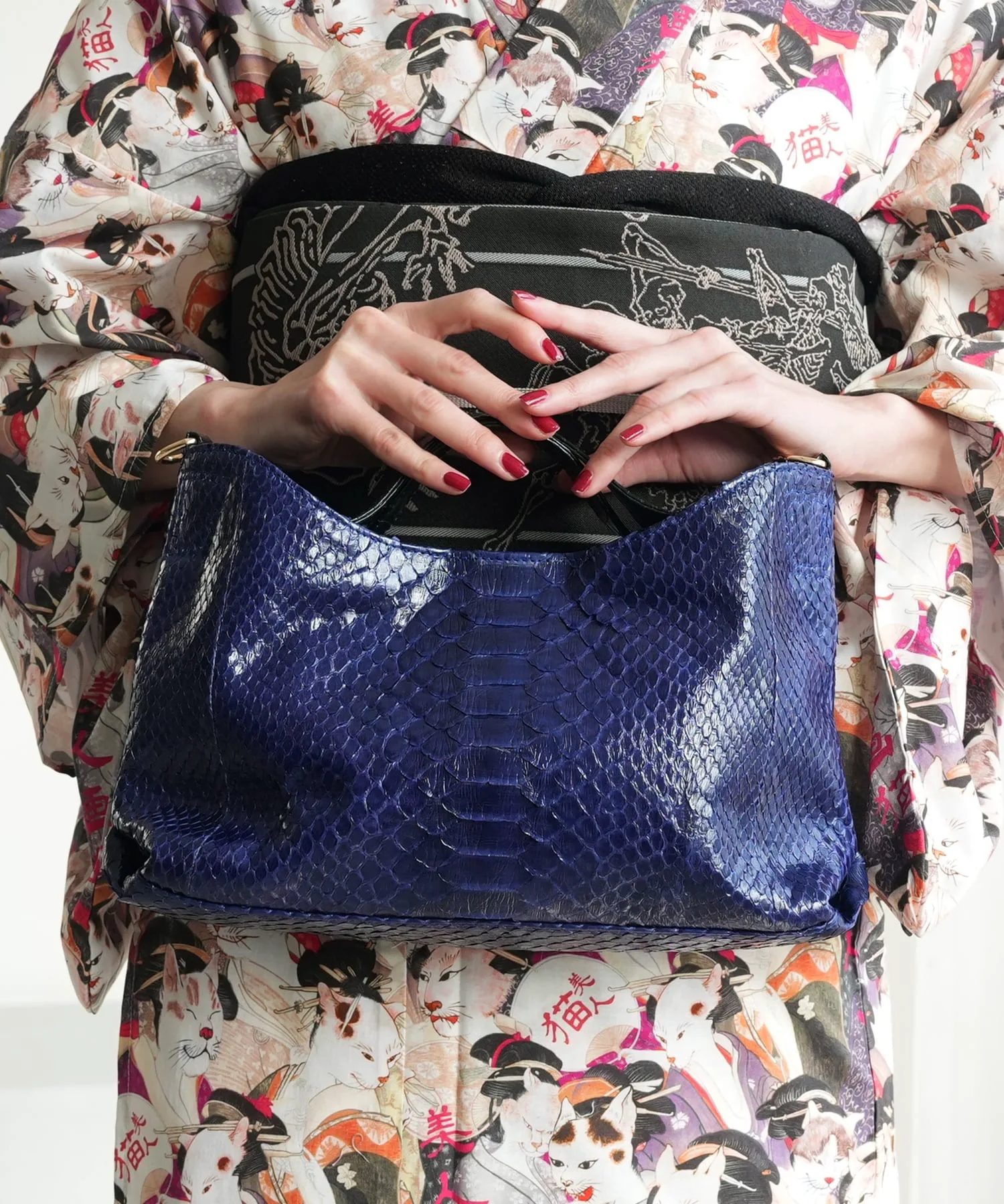 Сумка из натуральной змеиной и кобравой кожи с плечевым ремнем. Идеально подходит как для западного стиля, так и для кимоно.