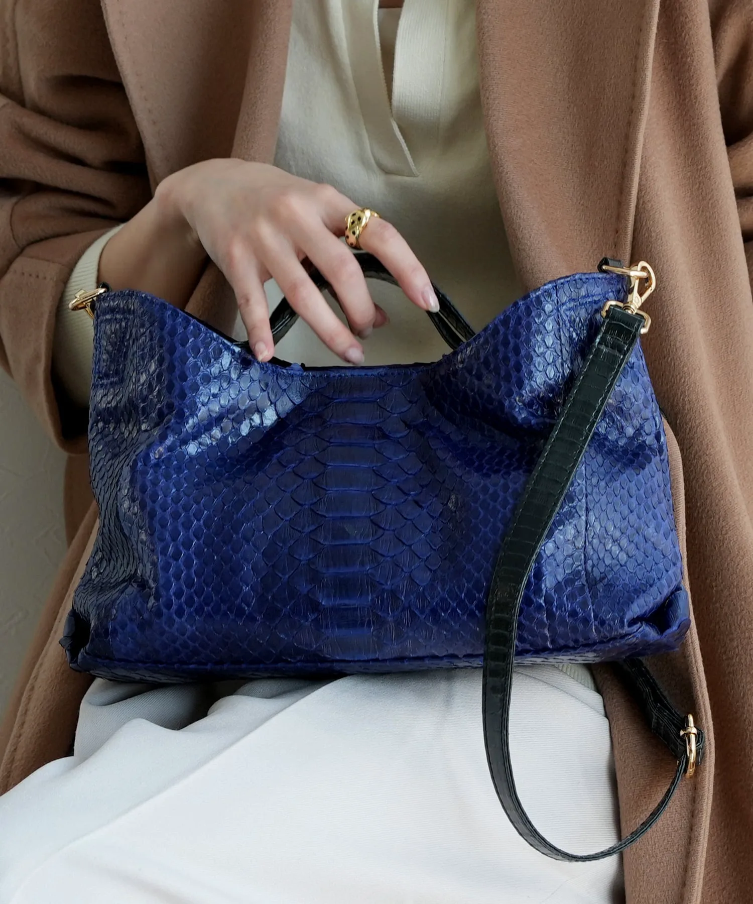 Также рекомендуется сочетать с сандалиями похожего цвета. Повседневный, уникальный и модный образ. Редкая экзотическая кожа.