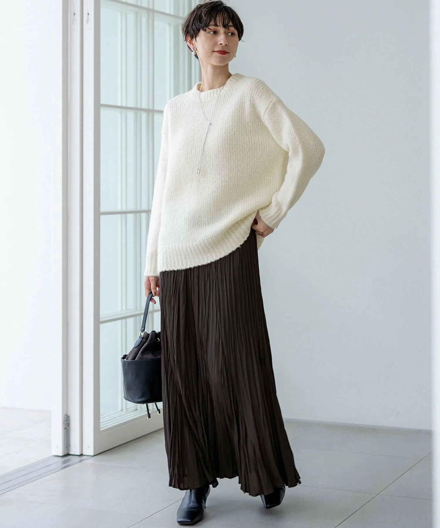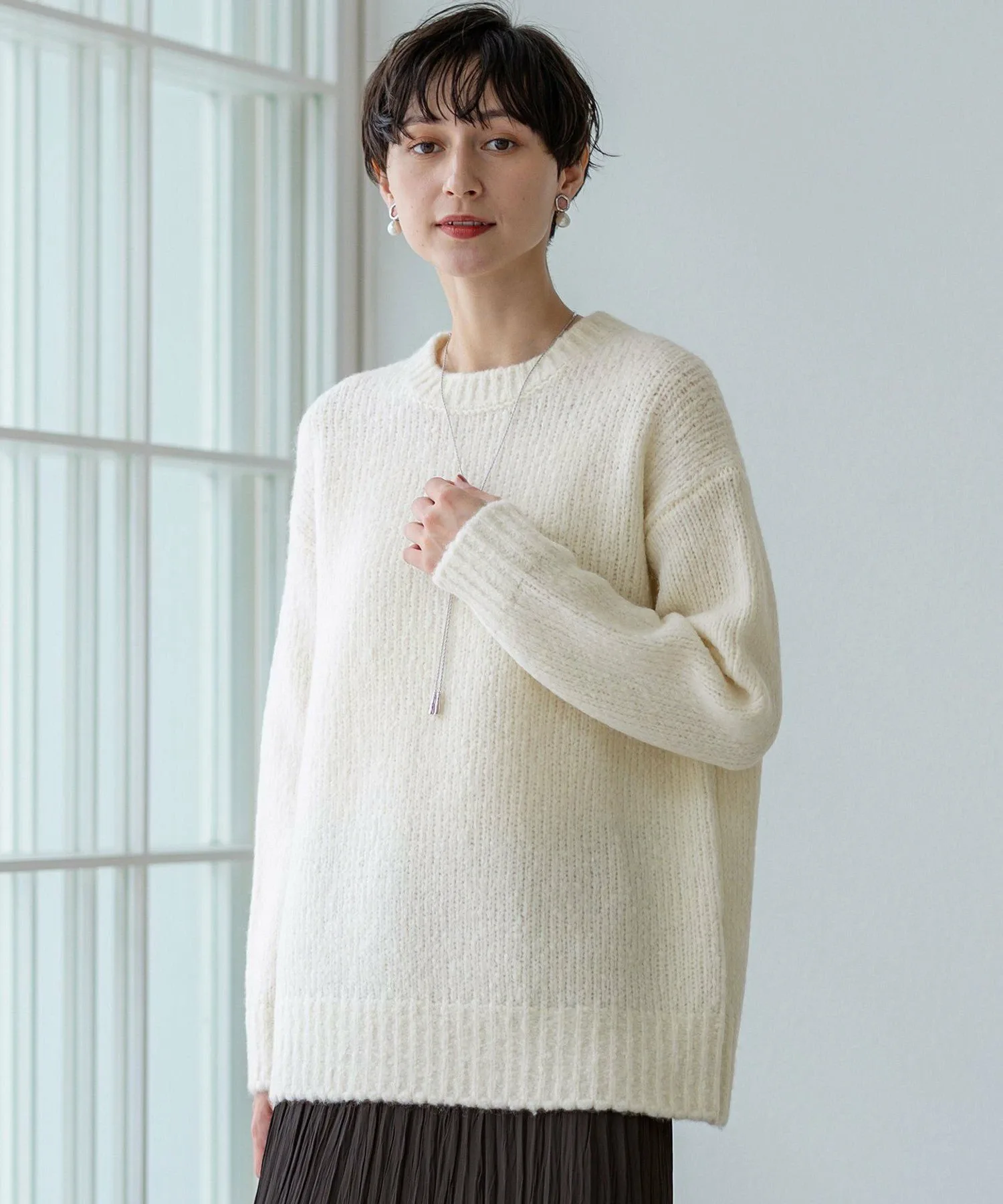 Этот трикотаж отличается яркими цветами и очаровательной текстурой тканей, окрашенных в Италии. Круглый вырез горловины с толстым ребристым воротником, свободный силуэт и длина до бедра делают его теплым и комфортным даже в разгар зимы. Он станет центральным элементом вашего образа, как только вы его наденете, а сочетание с простыми брюками создаст стильный вид. Доступен в трех цветах: универсальный белый (#001), привлекательный яркий пурпурный (#014) и освежающий небесно-голубой (#072).