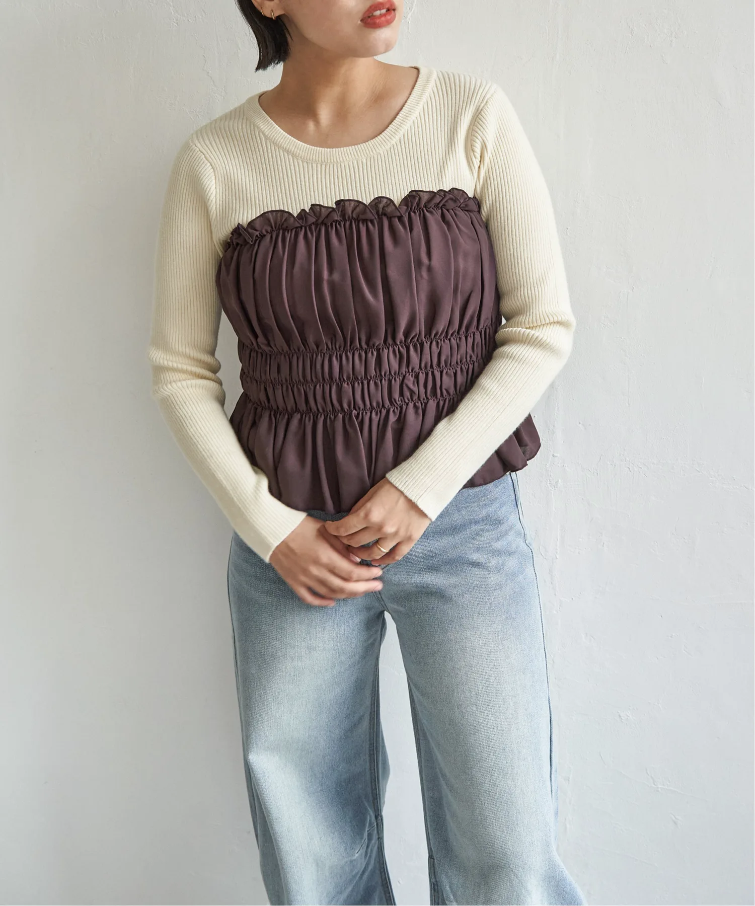 Гладкая ребристая вязка сочетается со сборками и пушистым жоржетом.
