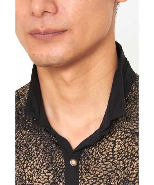 Планка и воротник выполнены из блестящего трикотажа, придающего изделию строгий вид.