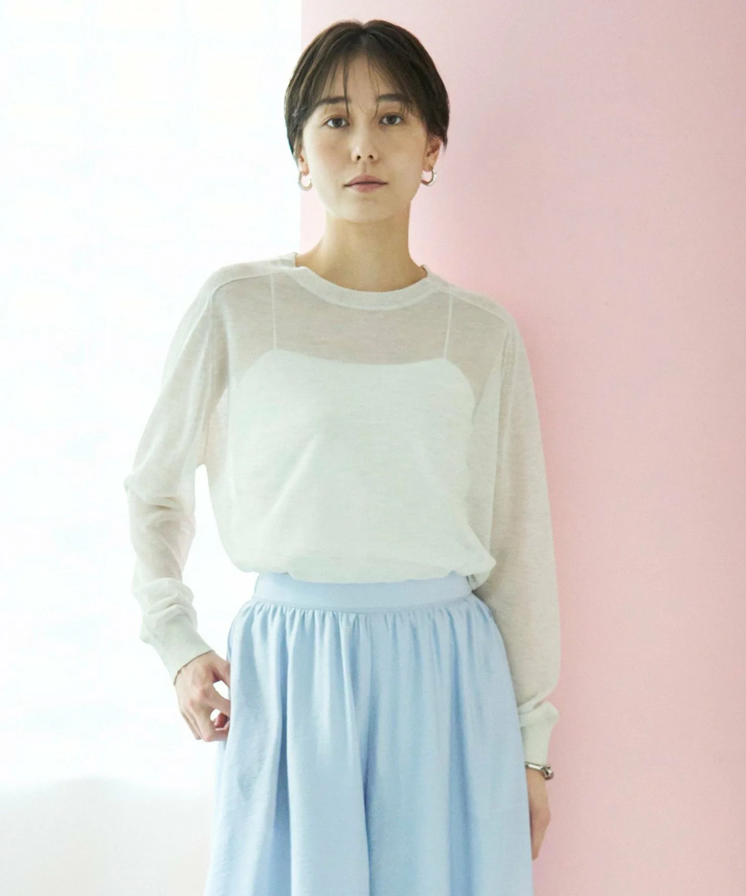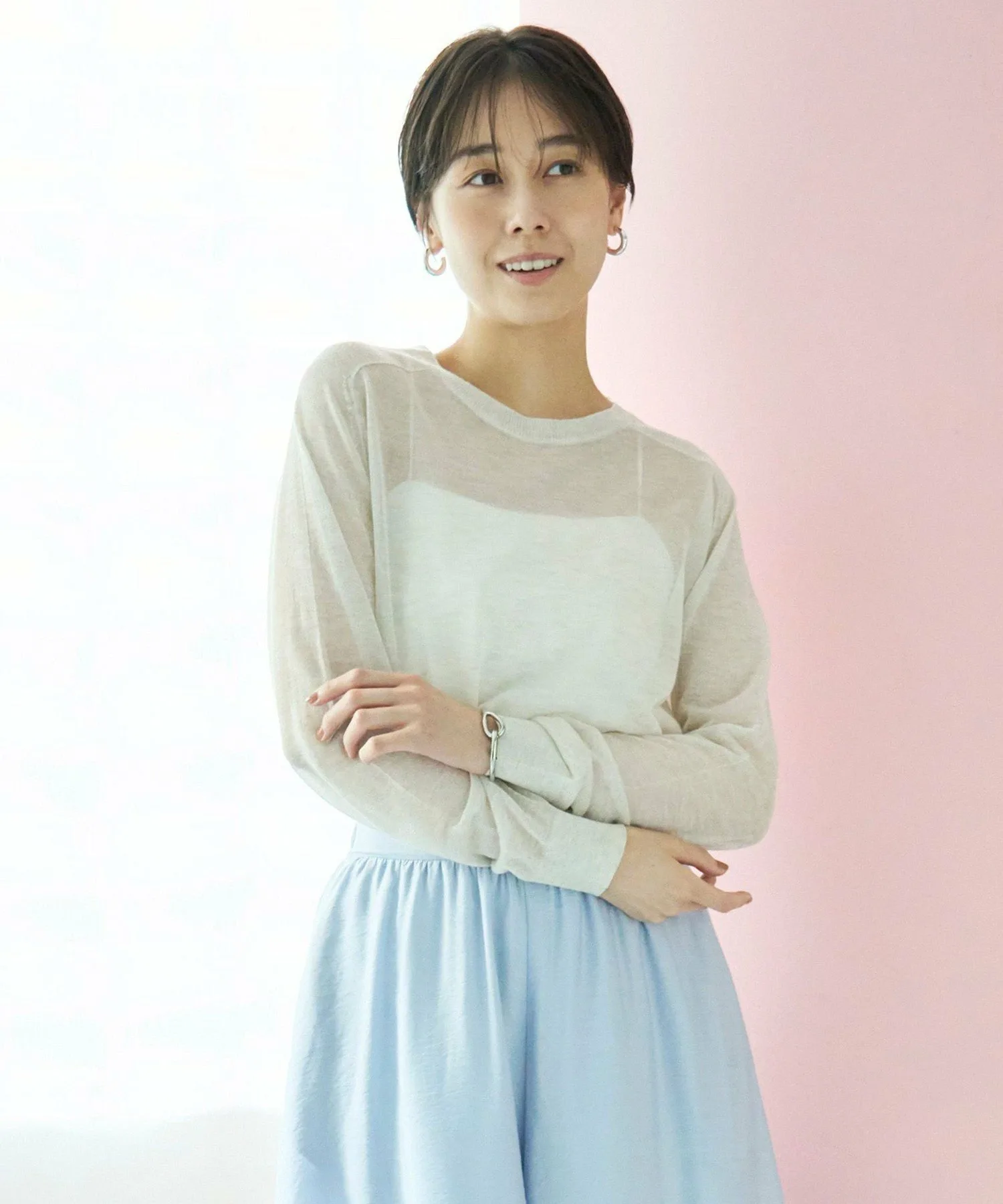 Дизайн: Этот полупрозрачный трикотажный пуловер создает чистый, изысканный образ. Удобный крой делает его модным даже в качестве самостоятельного элемента одежды. Наслаждайтесь многослойностью, просто меняя нижнее белье, например, майку или футболку с логотипом.