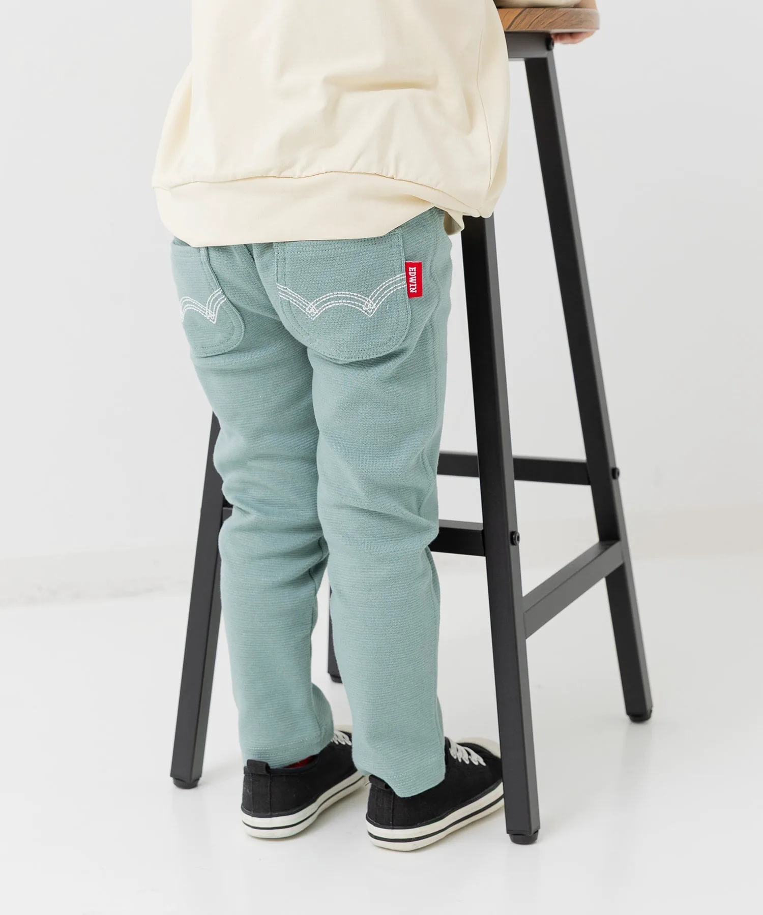 Продано более 150 000 единиц! Эти эластичные штаны идеально подходят для активных детей, позволяя им свободно двигаться! Популярные эластичные штаны Edwin представлены в широком ассортименте цветов! Прошивка карманов добавляет стильный штрих!