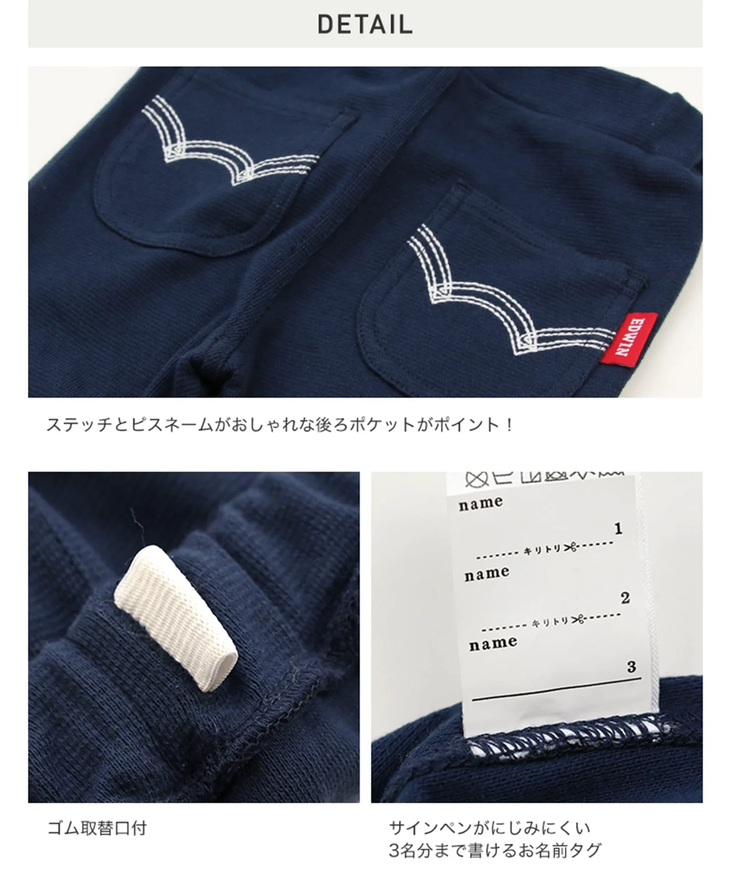 Продано более 150 000 единиц! Эти эластичные штаны идеально подходят для активных детей, позволяя им свободно двигаться! Популярные эластичные штаны Edwin представлены в широком ассортименте цветов! Прошивка карманов добавляет стильный штрих!