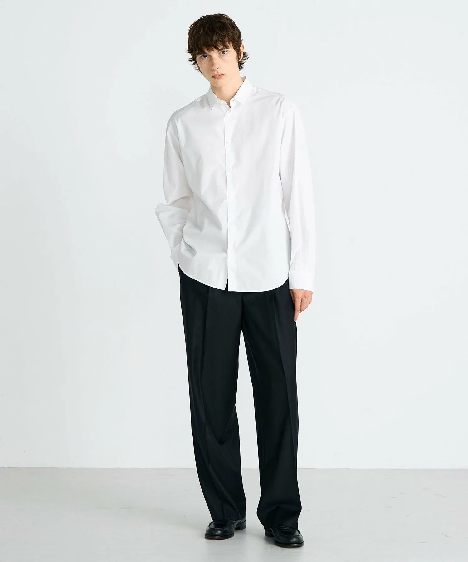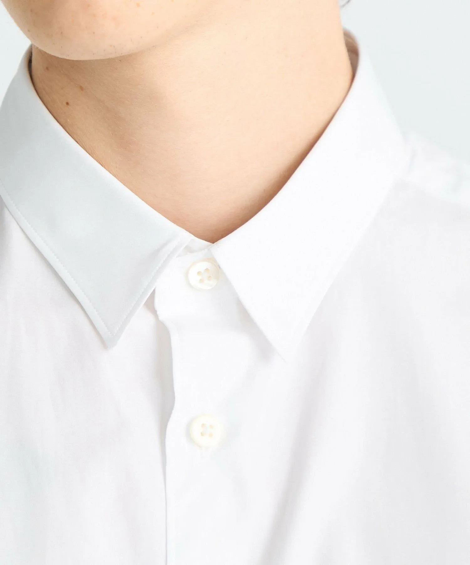 Рубашка с обычным воротником, изготовленная из двухслойного поплина высокой плотности плотностью 120 нитей от британского производителя рубашек Thomas Mason.