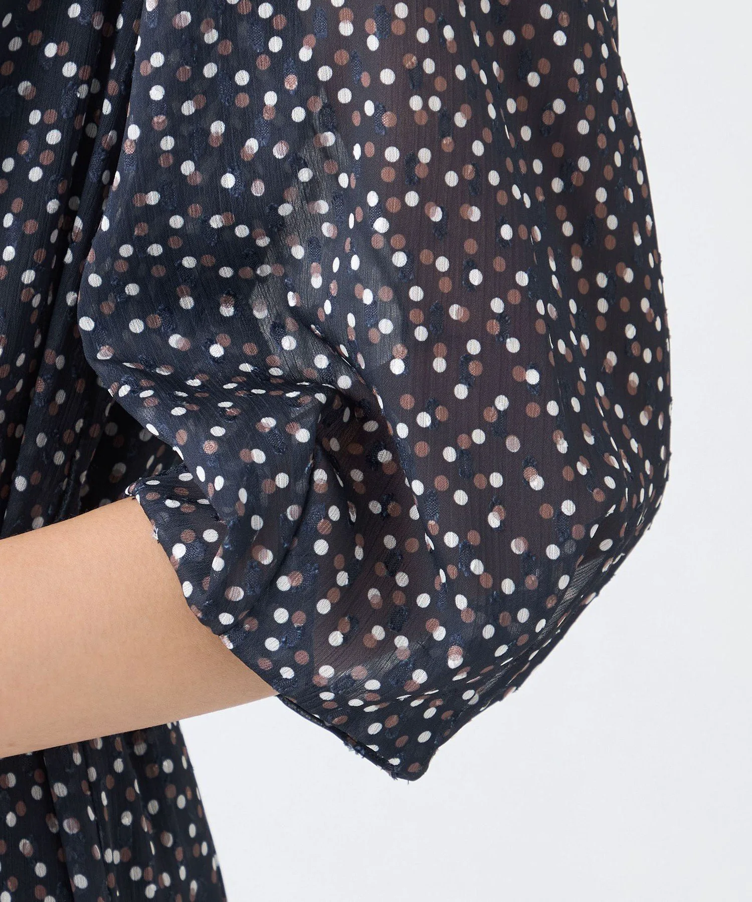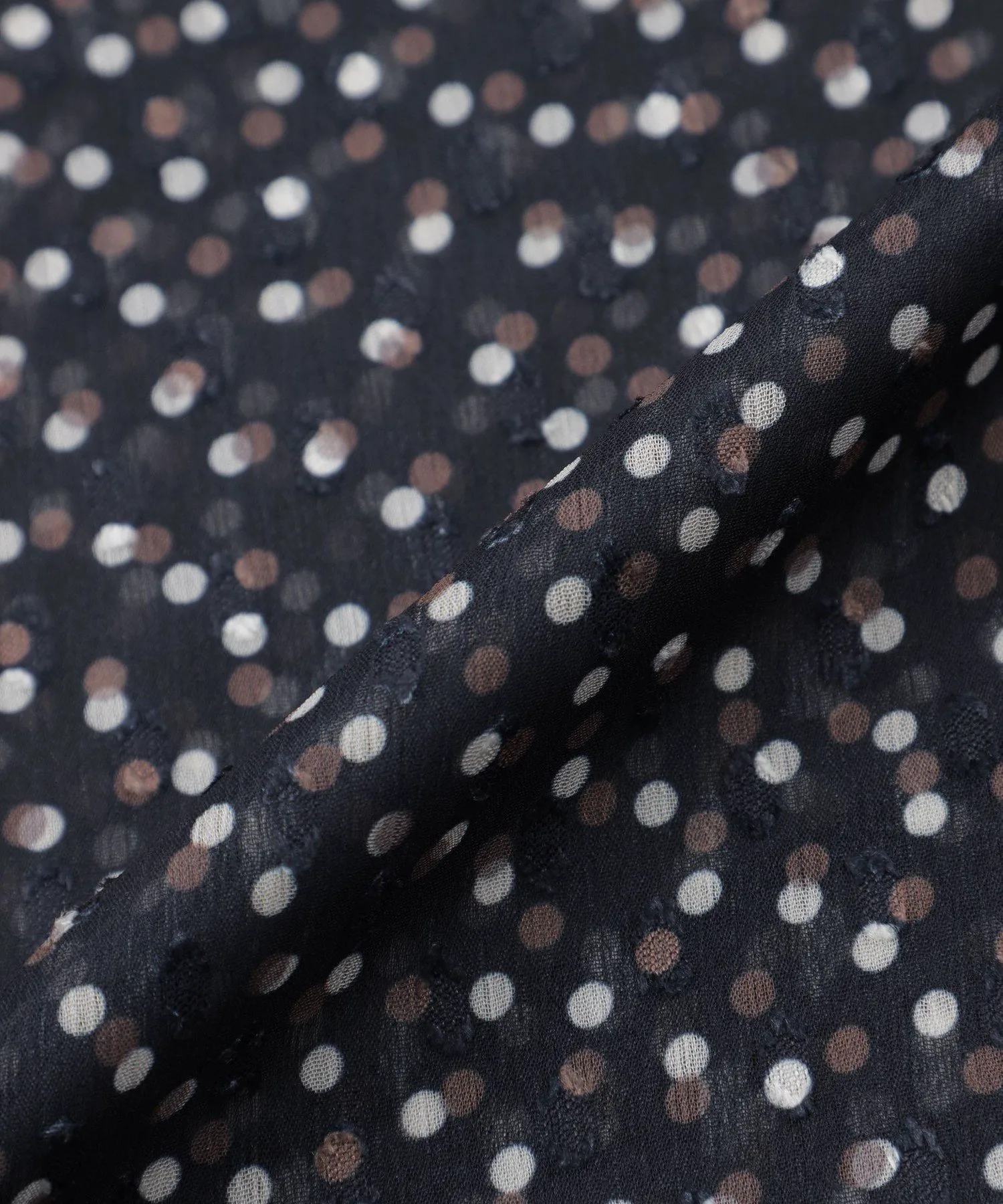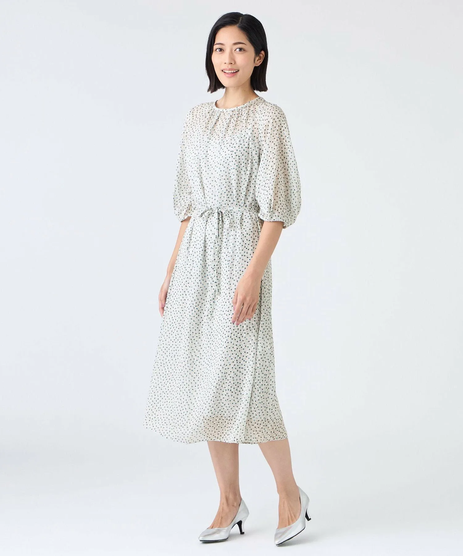 Это платье украшено принтом из линии «Радуга» от Ratti, давнего производителя с 80-летней историей в регионе Комо в Италии. Неравномерно перекрывающийся узор в горошек создает утонченный и изысканный образ. Этот высококачественный материал имеет деликатную струйную печать на прохладной жаккардовой ткани.