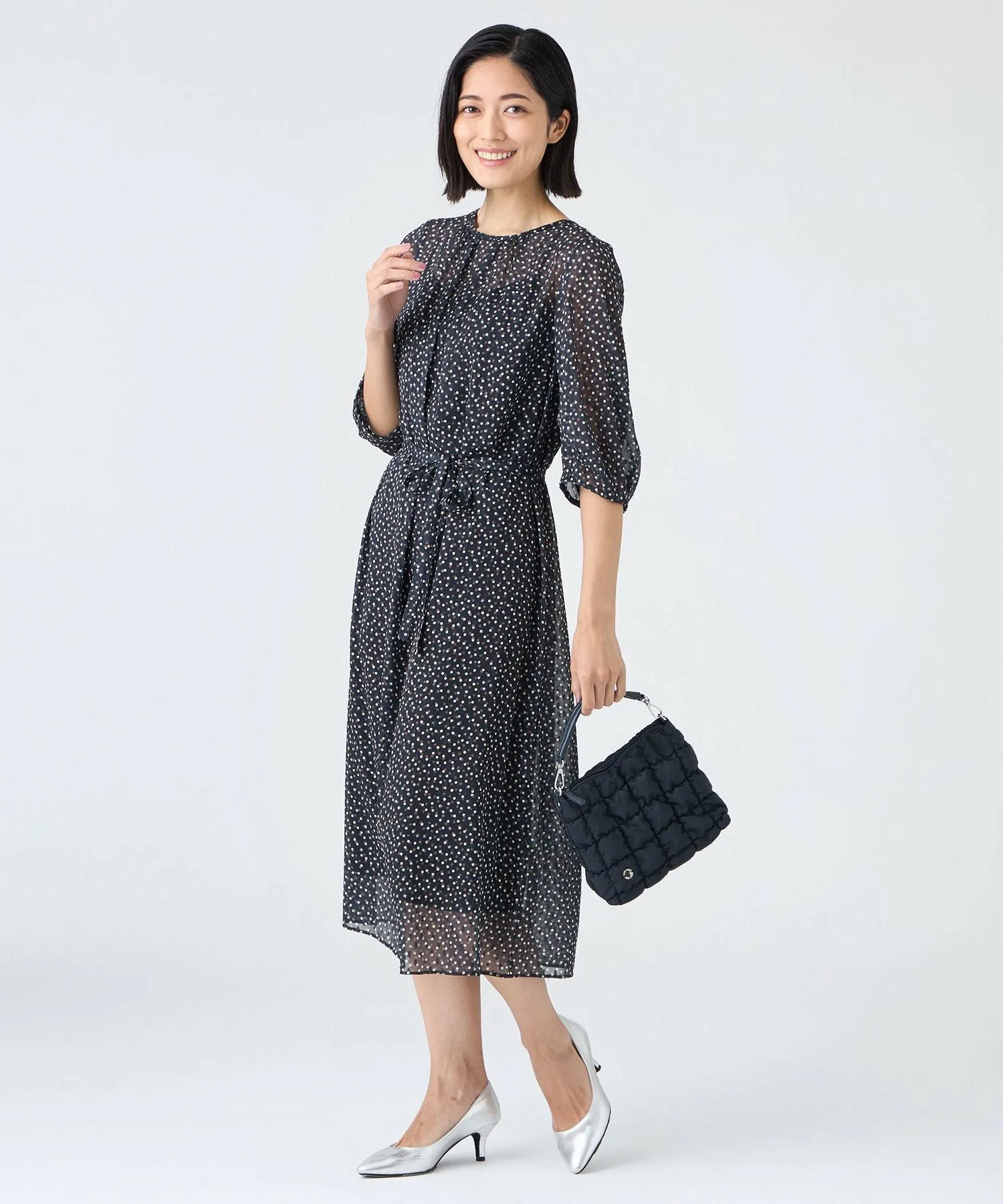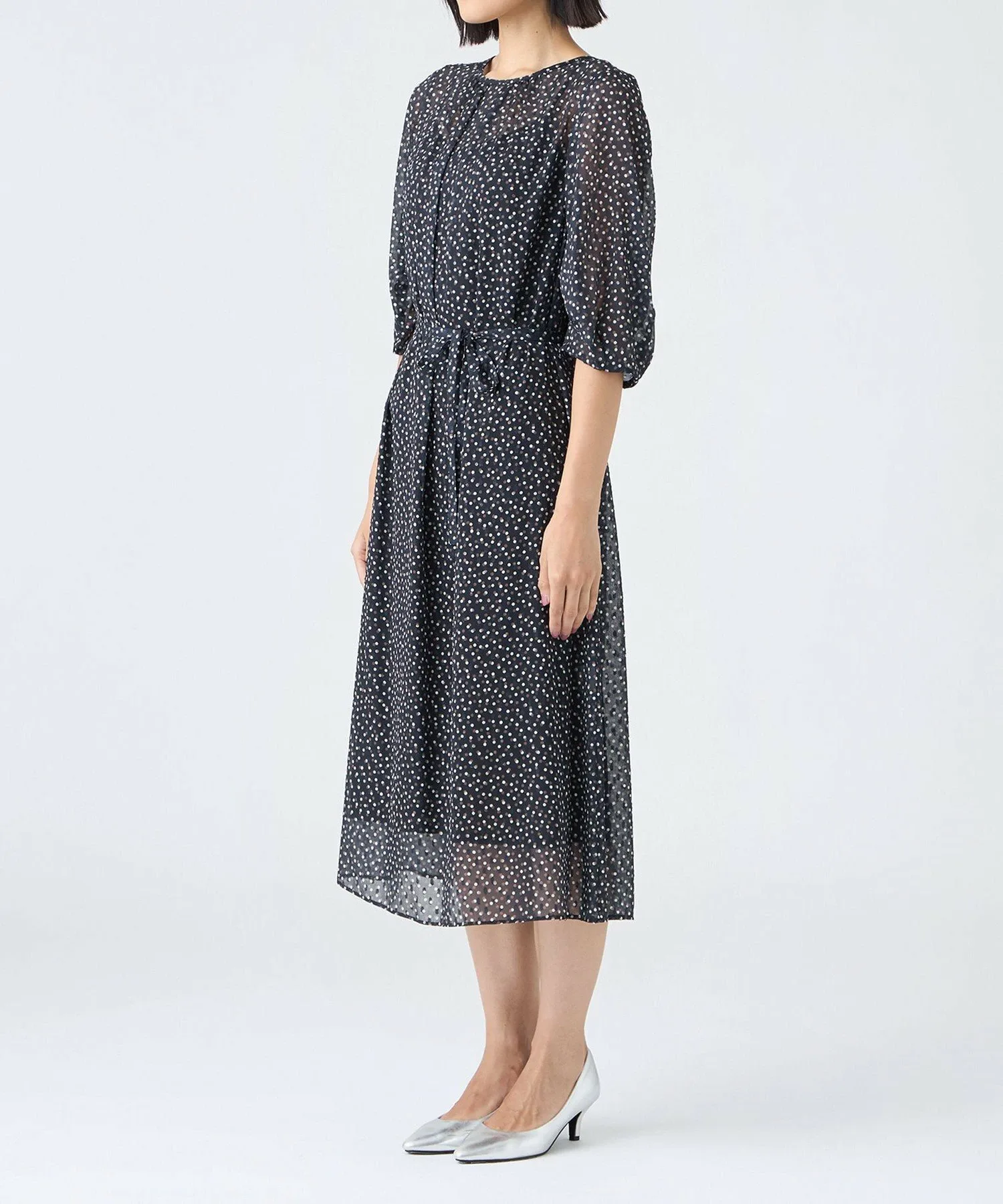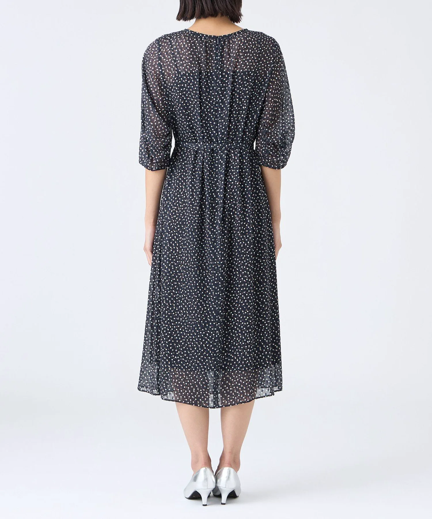 Это платье украшено принтом из линии «Радуга» от Ratti, давнего производителя с 80-летней историей в регионе Комо в Италии. Неравномерно перекрывающийся узор в горошек создает утонченный и изысканный образ. Этот высококачественный материал имеет деликатную струйную печать на прохладной жаккардовой ткани.