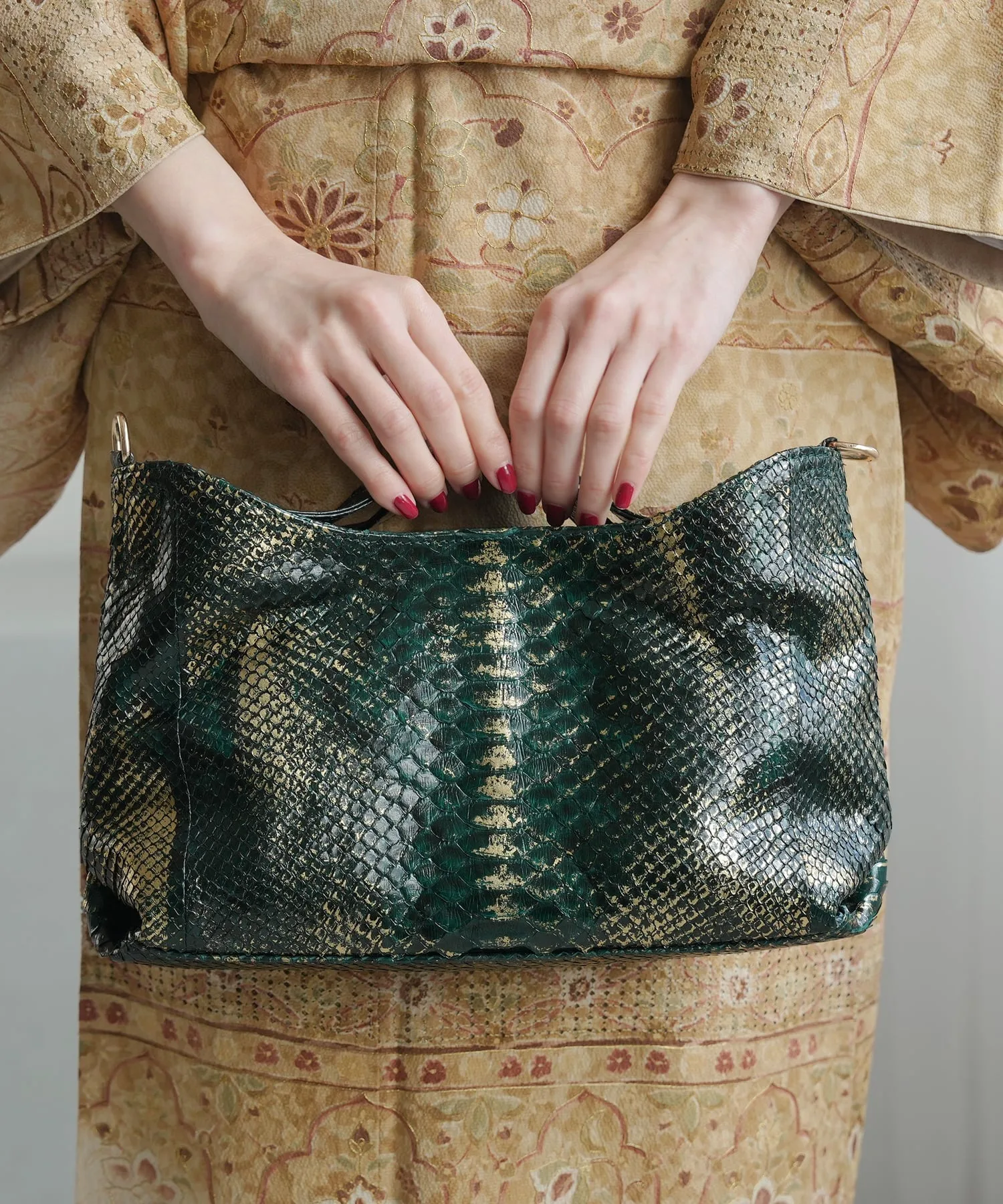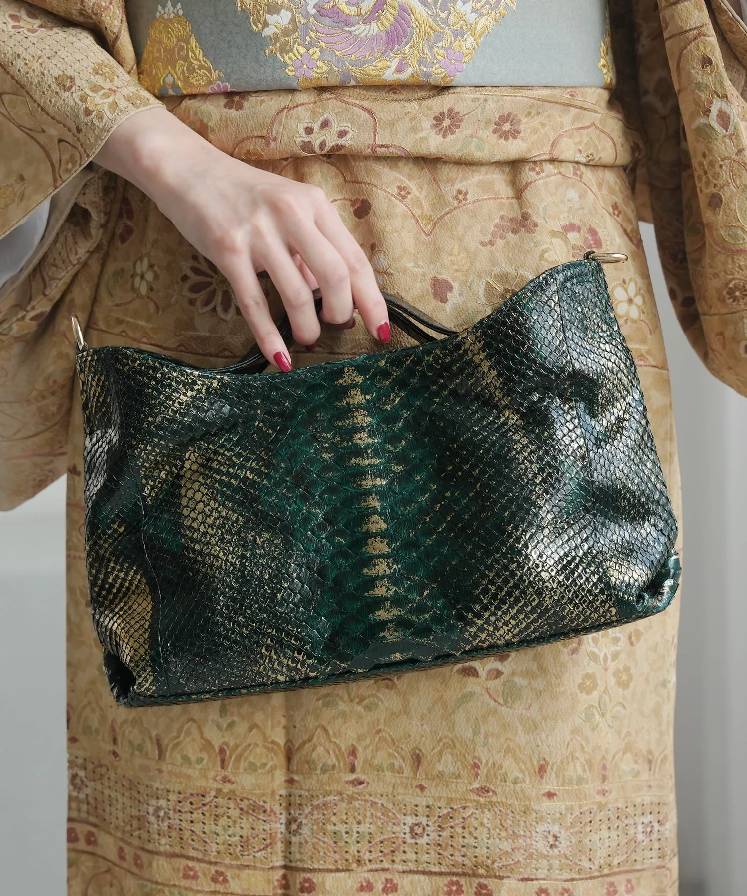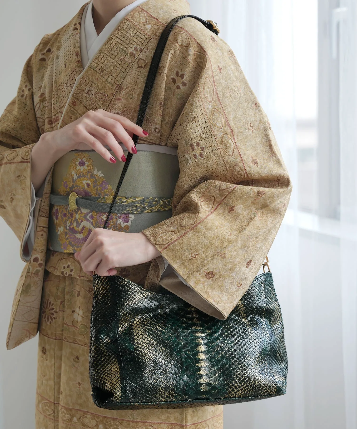 Сумка из натуральной змеиной и кобравой кожи с плечевым ремнем. Идеально подходит как для западного стиля, так и для кимоно.