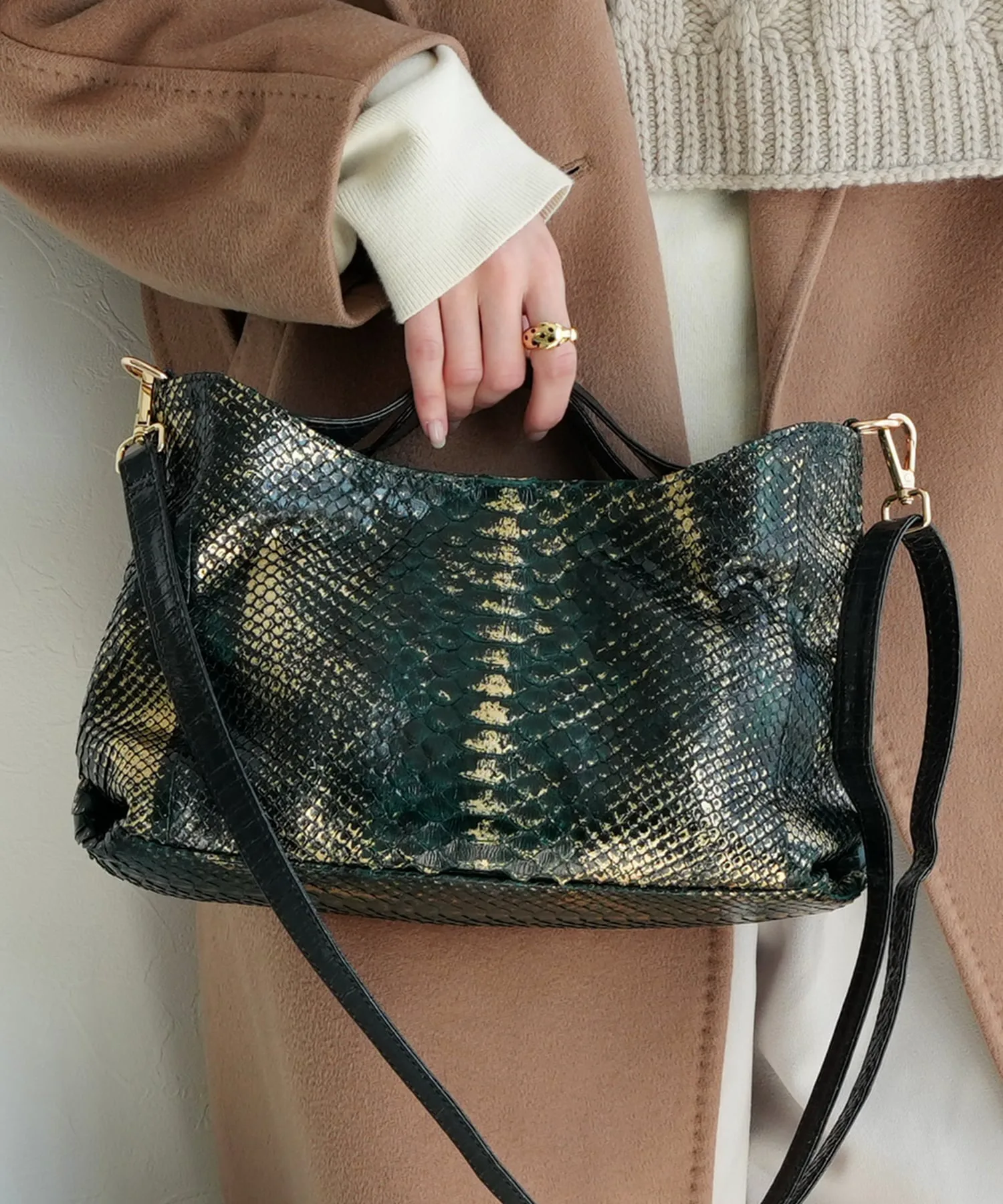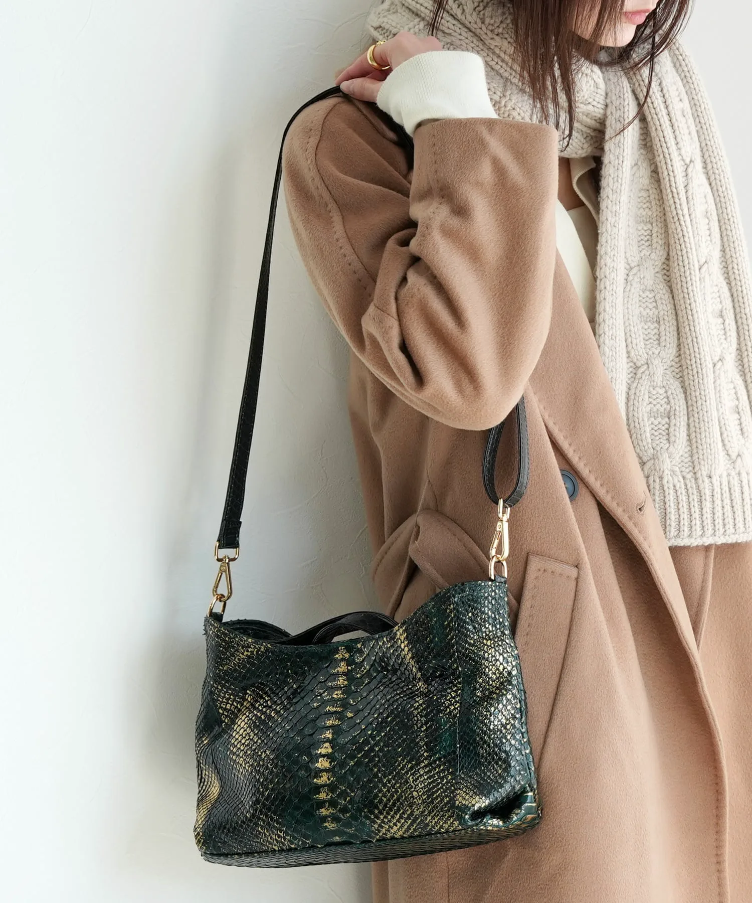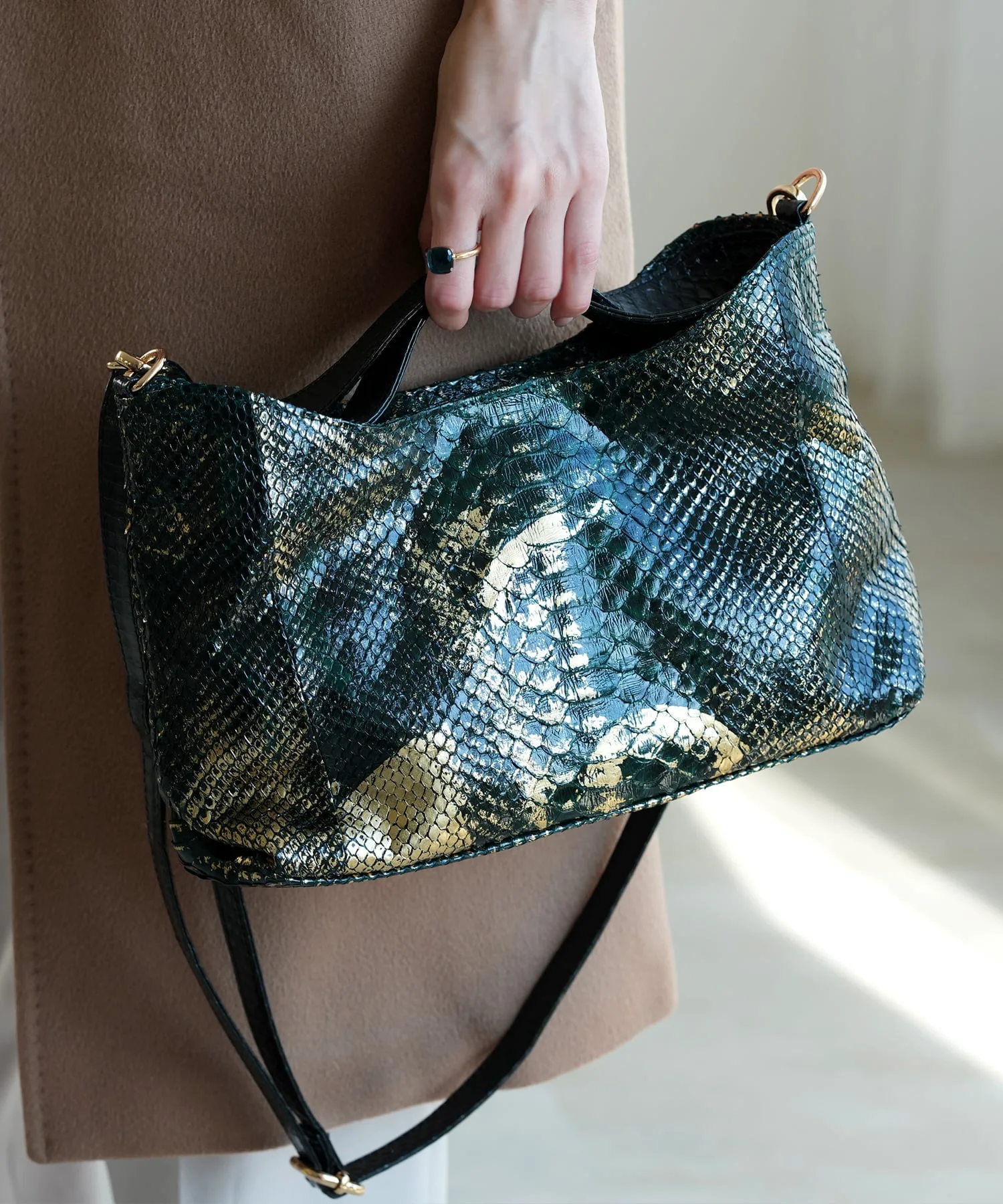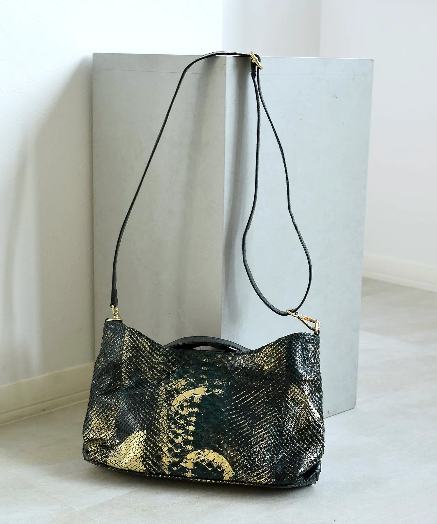 Сумка из натуральной змеиной и кобравой кожи с плечевым ремнем. Идеально подходит как для западного стиля, так и для кимоно.