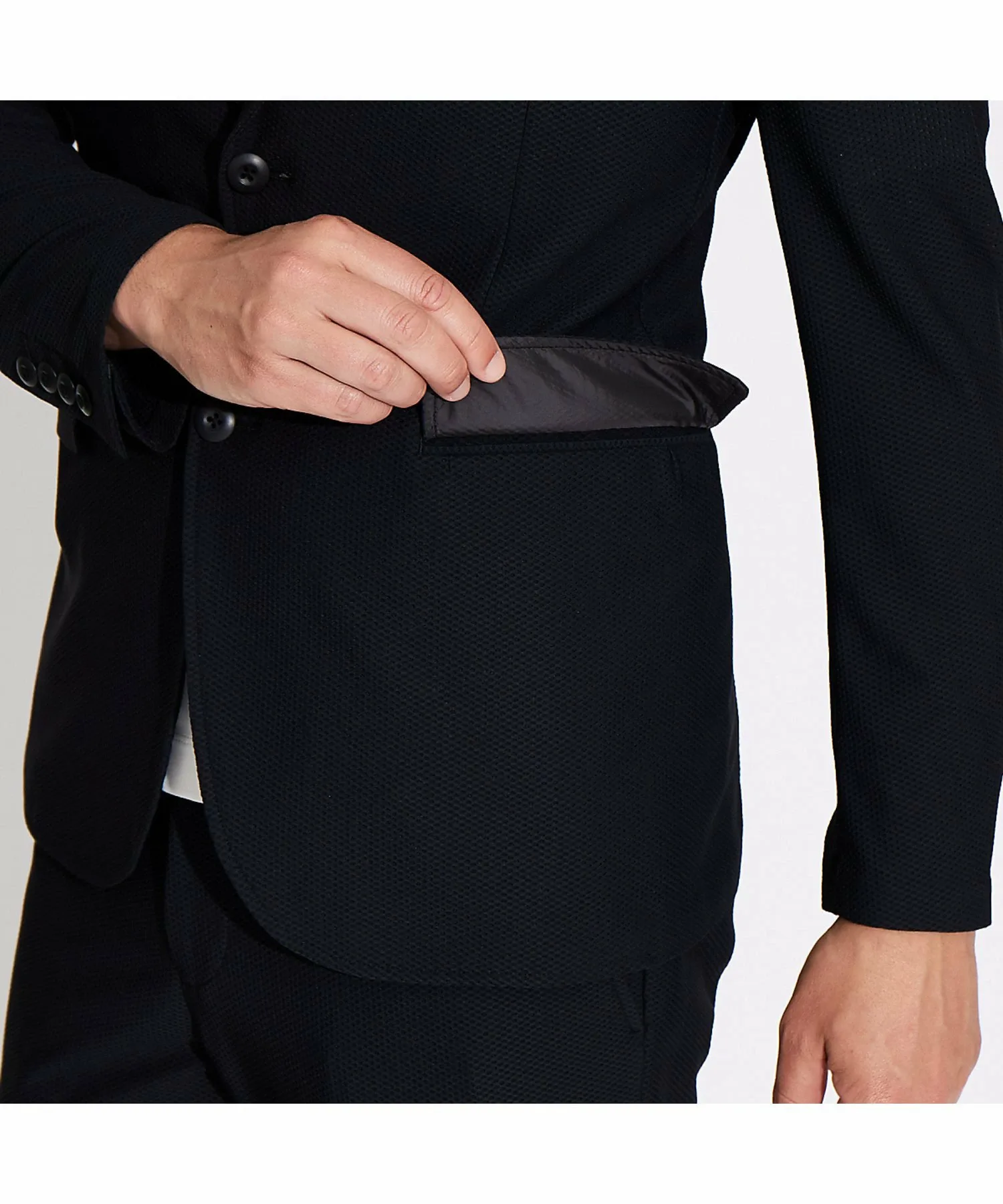 Изготовлена из высокодышащего и эластичного сетчатого трикотажа с 3D-вязкой, которая уменьшает видимость прозрачной нижней рубашки. Куртка также пригодна для стирки, что делает ее отличным летним аксессуаром.